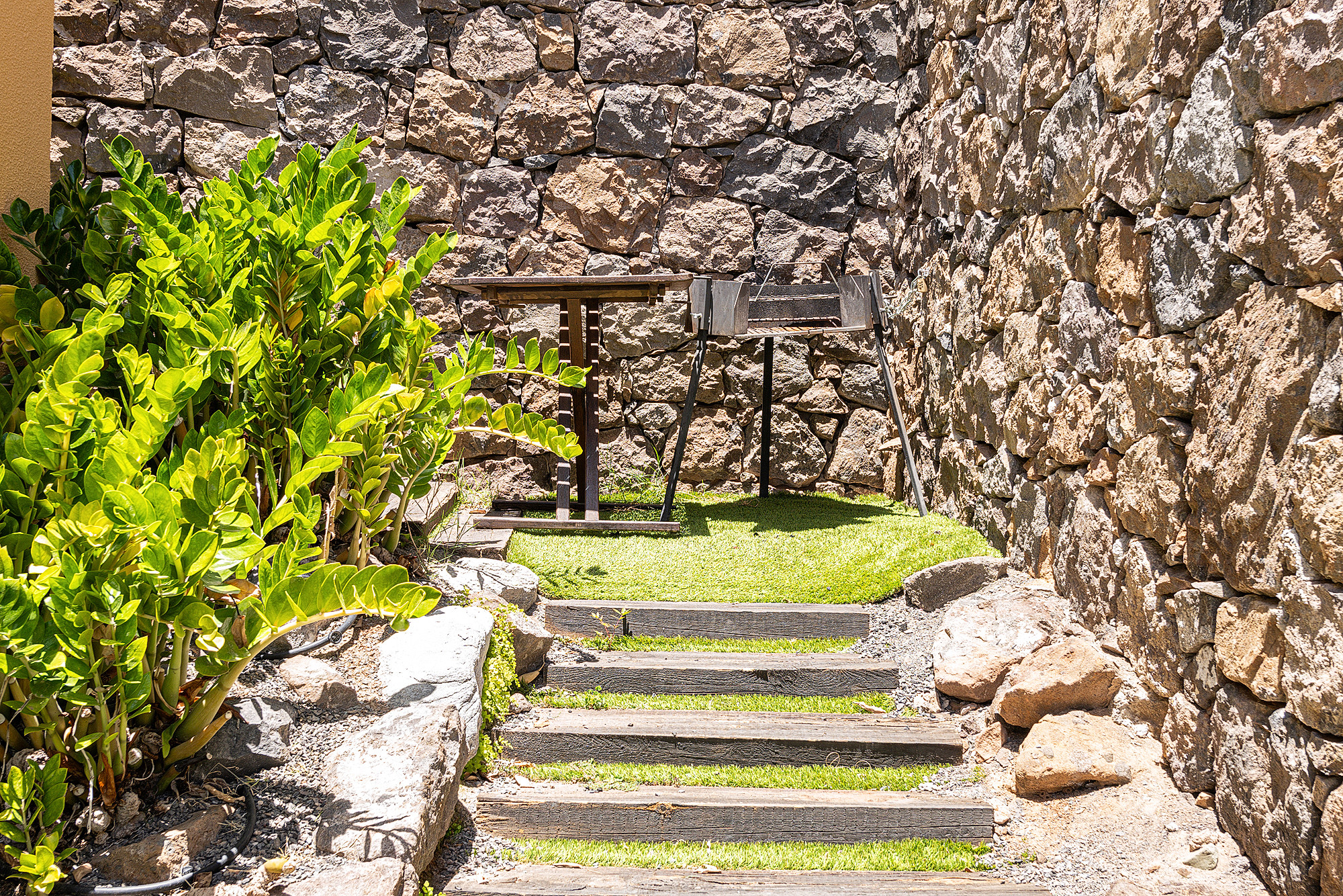 A casa tem várias janelas que permitem vistas maravilhosas para o exterior. O jardim tem uma bela varanda com mesa de jantar e poltronas com vista para o maravilhoso campo de golfe, onde pode desfrutar de noites maravilhosas, outra zona com redes e piscina privada e outra com poltronas e uma pequena mesa ao sol.