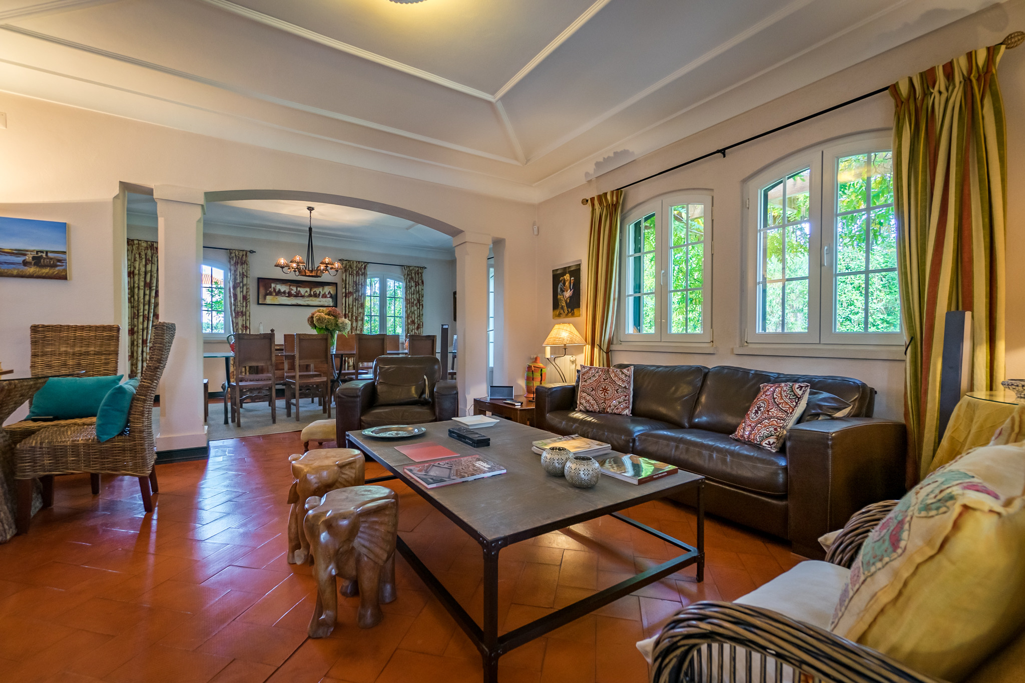 A Quinta do Peru Golf Retreat é uma charmosa villa privada inserida no condomínio da Quinta do Peru Golf & Country Club nas imediações de Sesimbra e da Serra da Arrábida. Esta é uma localização perfeita quer para golfistas quer para quem procure a privacidade e a tranquilidade da natureza. A Quinta do Peru Golf Retreat tem 4 quartos, 5 casas de banho, ar condicionado na sala e num dos quartos e aquecimento central. Os hóspedes que queiram viajar com o seu animal de estimação serão bem vindos pois a propriedade é pet-friendly. Devem incluir este pedido na sua reserva. A casa está decorada num estilo tradicional português que conta a história da família dos seus proprietários. Aqui, os hóspedes sentir-se-ão em segurança e num ambiente privado e muito confortável. A casa dispõe de áreas de estar onde poderá ler um livro, trabalhar, jogar xadrez ou simplesmente relaxar. O exterior convida a apreciar natureza e ao convívio familiar ao ar livre quer seja na área lounge, à mesa de refeições ou à beira da piscina. O condomínio disponibiliza aulas de Tennis e Golfe mediante reserva. A propriedade é também perfeita para retiros de saúde e bem-estar e eventos de empresas. Eventos poderão ser autorizados mediante pedido prévio e será aplicado um custo adicional.