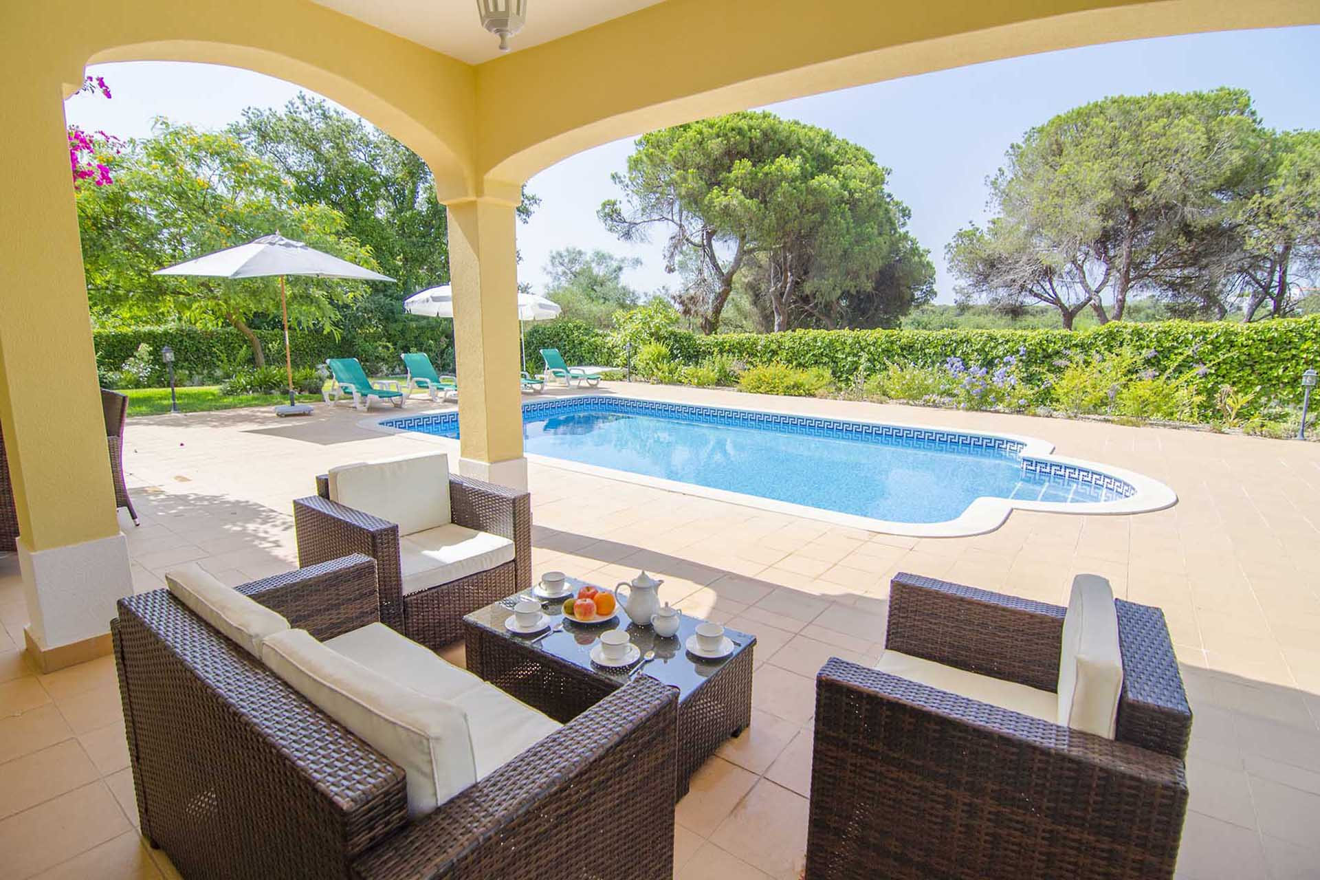 Villa com jardim e piscina privada perto de Vilamoura e a 5 minutos a pé do Parque Aquático Aquashow. Com 3 quartos em-suite e uma área exterior espaçosa, esta moradia é ideal para umas férias em harmonia.