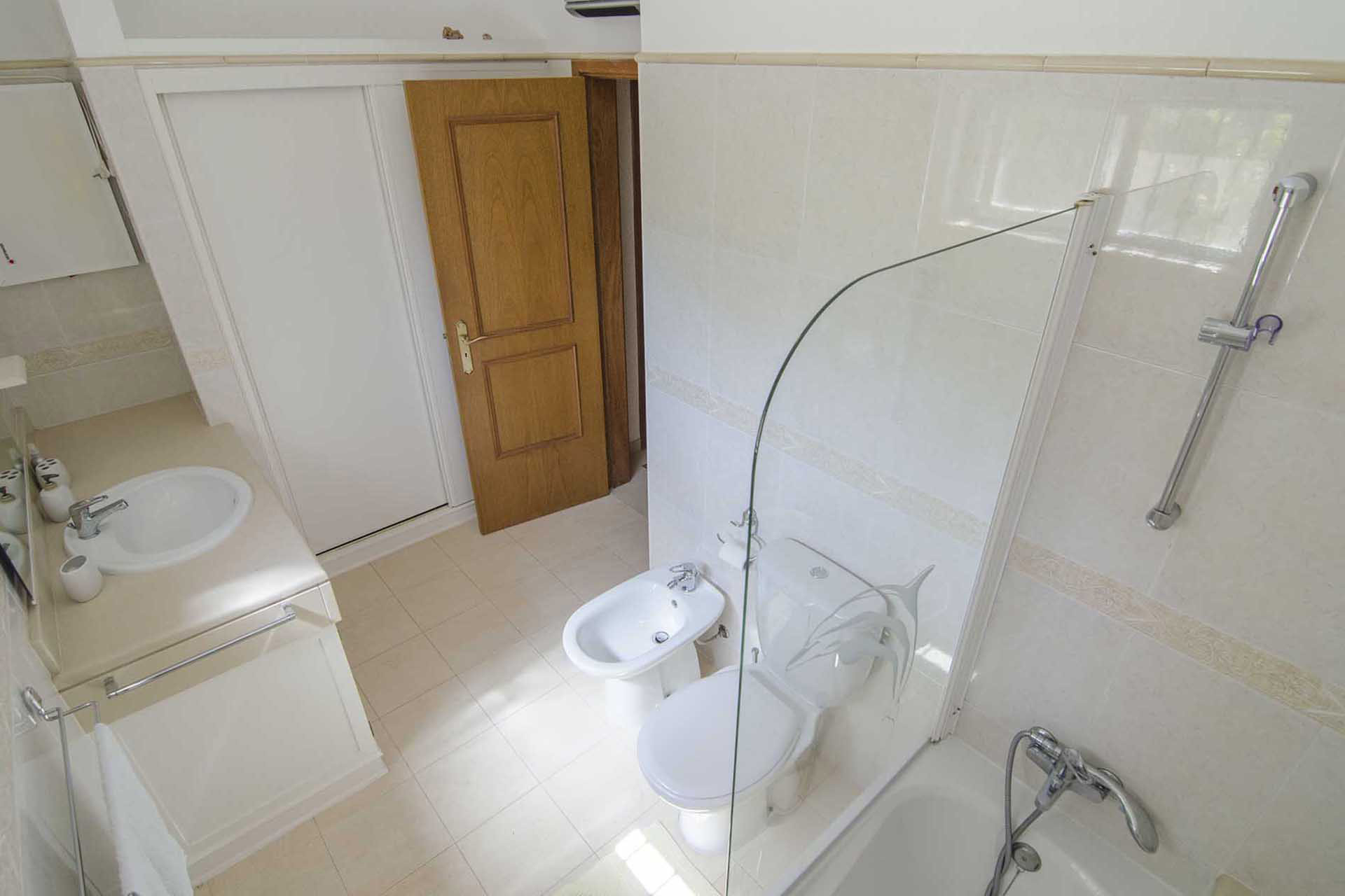 No rés-do-chão encontra-se um dos quartos de casal em-suite, com vista para a piscina, com ar condicionado e exposição solar durante todo o dia.