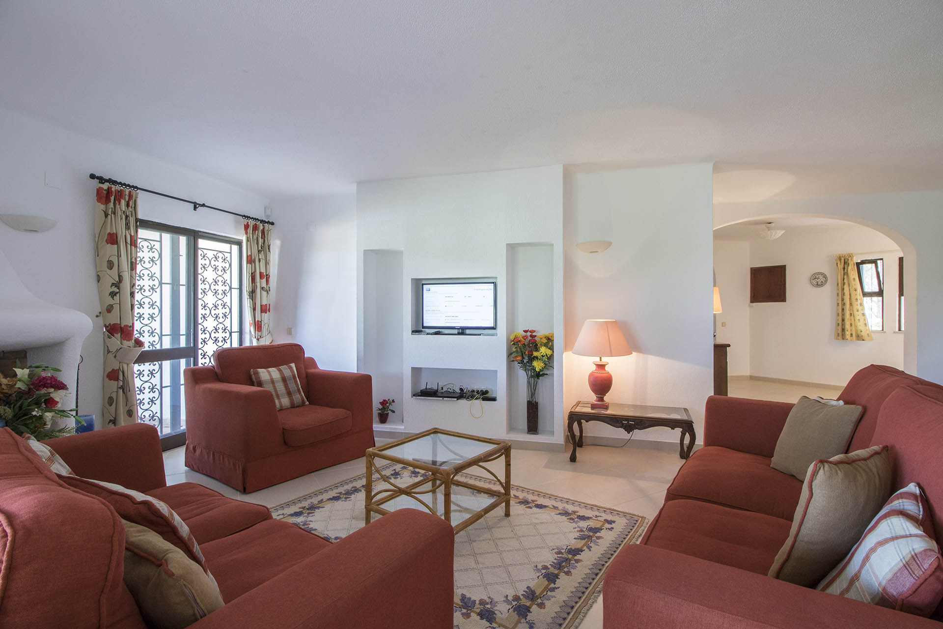 A sala é também ela bastante espaçosa e com acesso fácil à área de refeições exterior, com uma ligação à internet de banda larga com Wi-Fi, televisão com canais portugueses e estrangeiros.