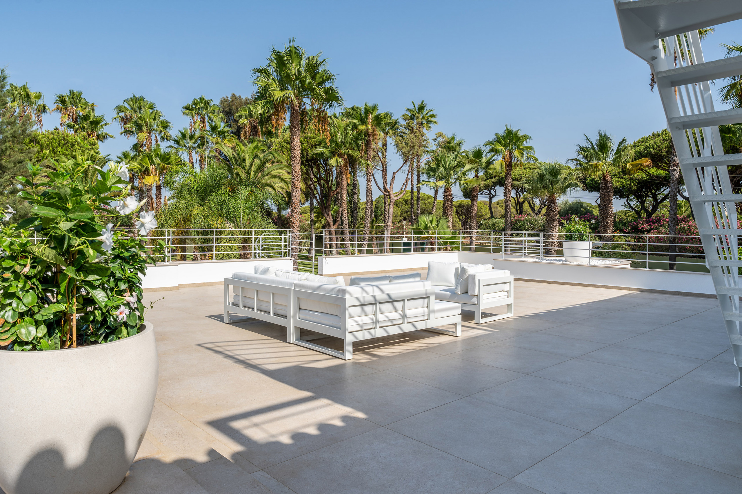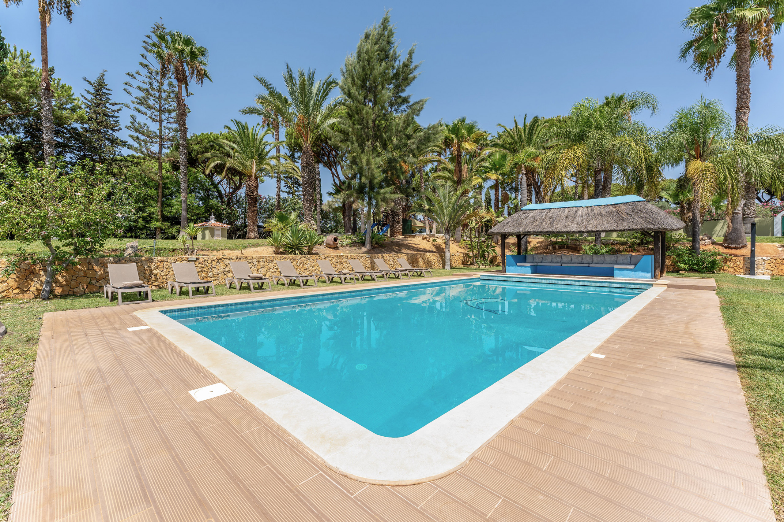 O exterior é magnífico, as inúmeras palmeiras e os hectares de relva contribuem para o sentimento tropical do jardim, aliado a uma grande piscina de 12 metros de comprimento por 6 metros de largura e profundidades entre 1 metro e 2,2 metros e pelo menos 12 espreguiçadeiras ao lado. A estrutura de aspecto natural próxima proporcionará uma sombra fresca nos dias quentes de verão.