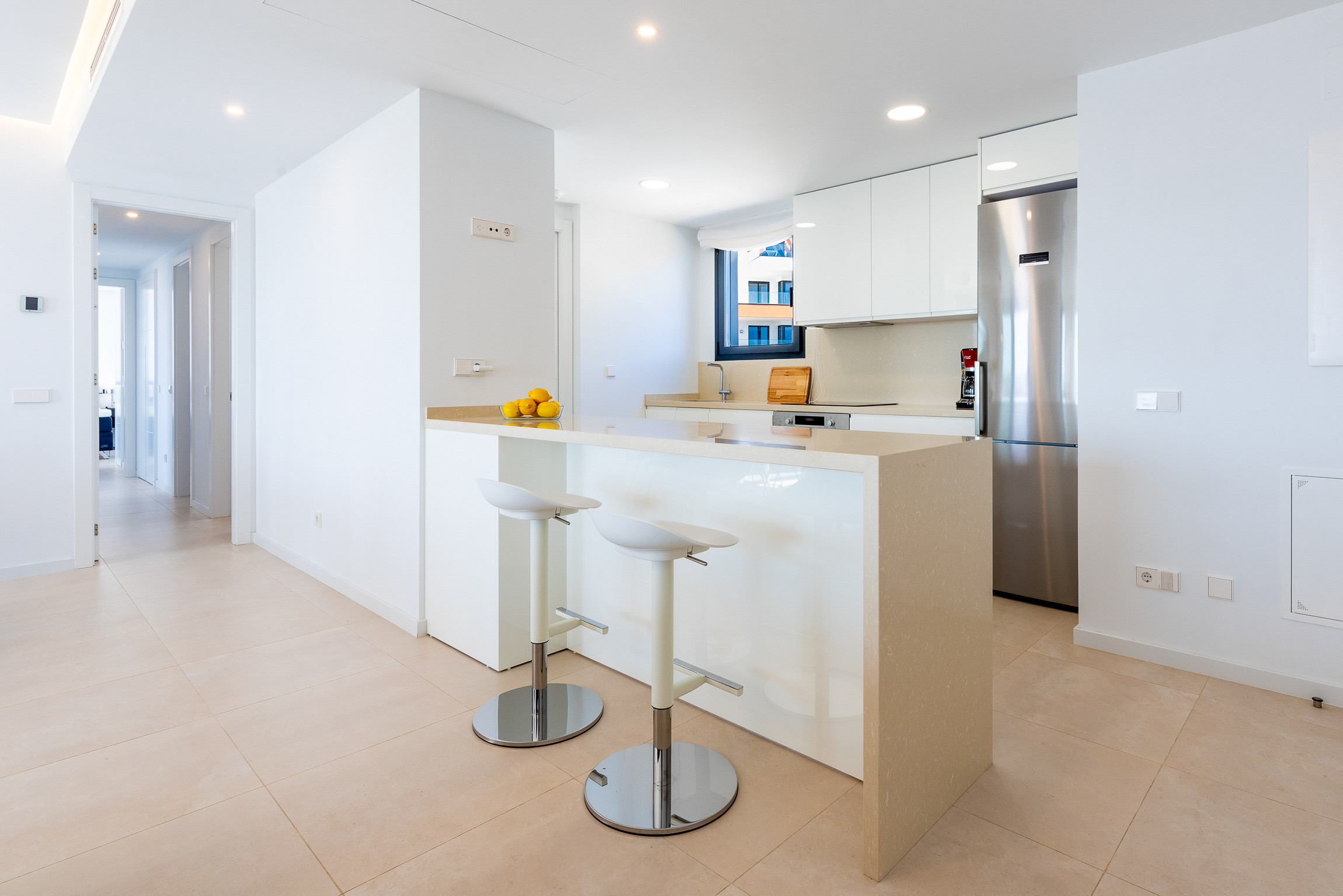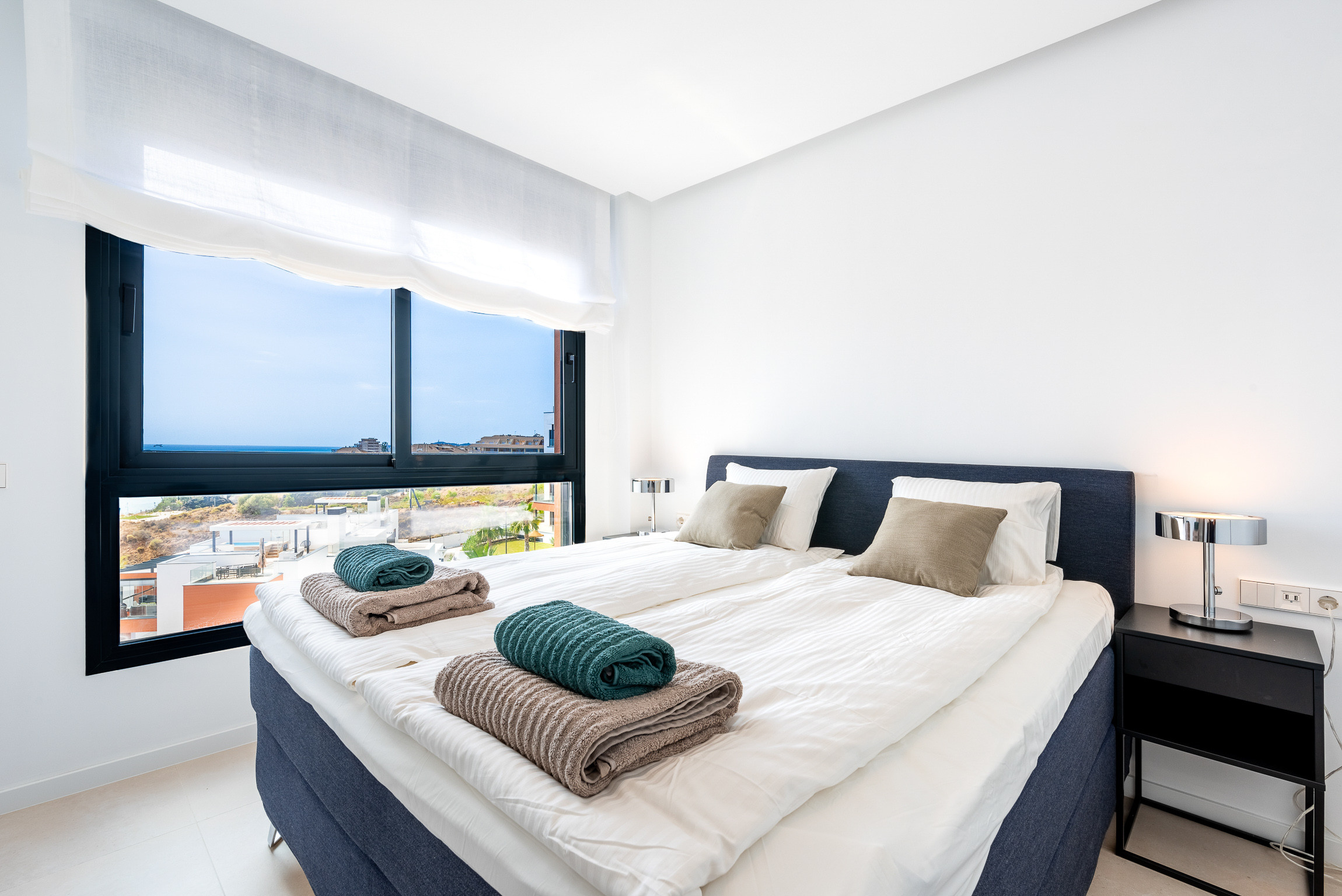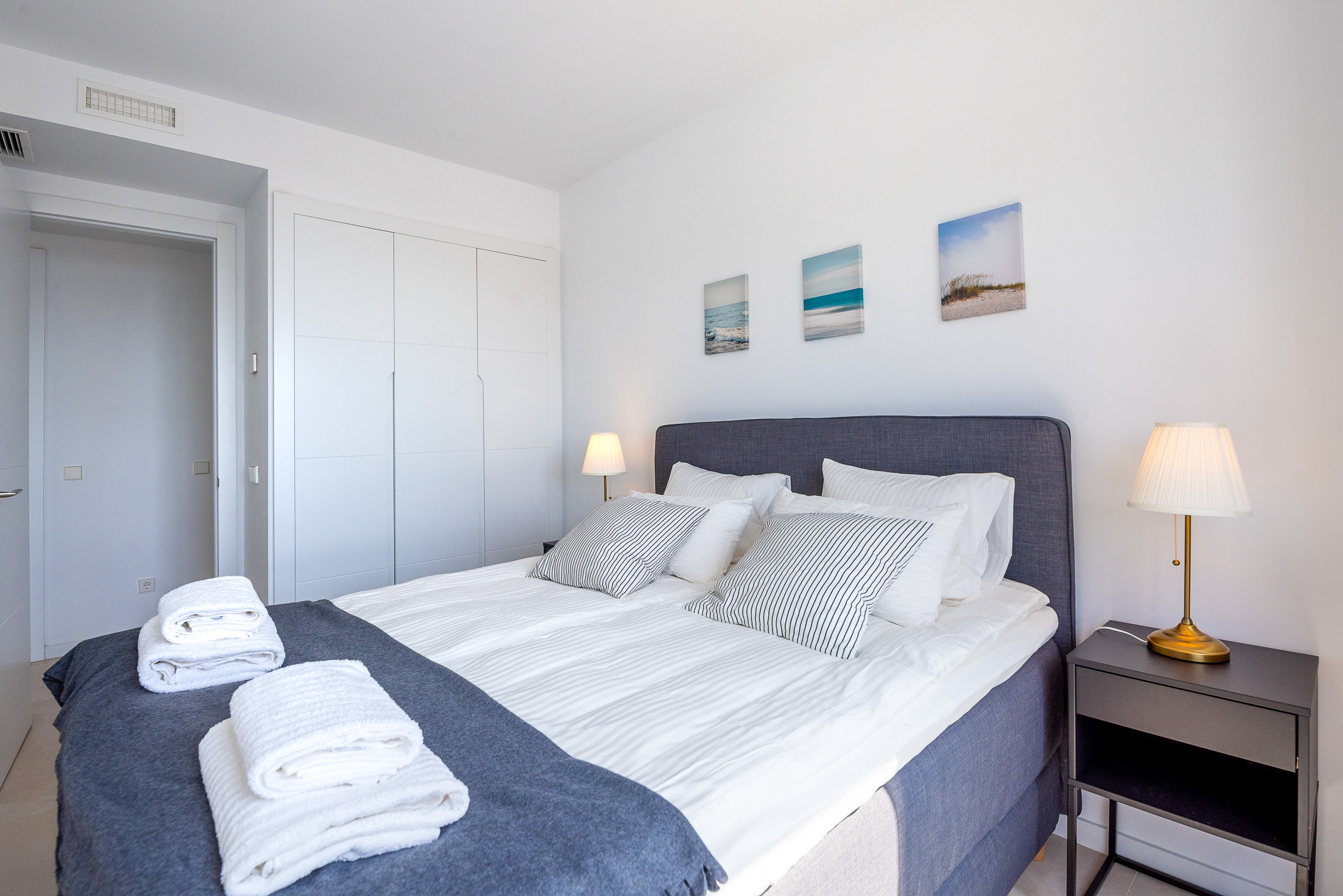The apartment has 3 bedrooms, all with views of the Mediterranean, 2 bathrooms and guest toilet.