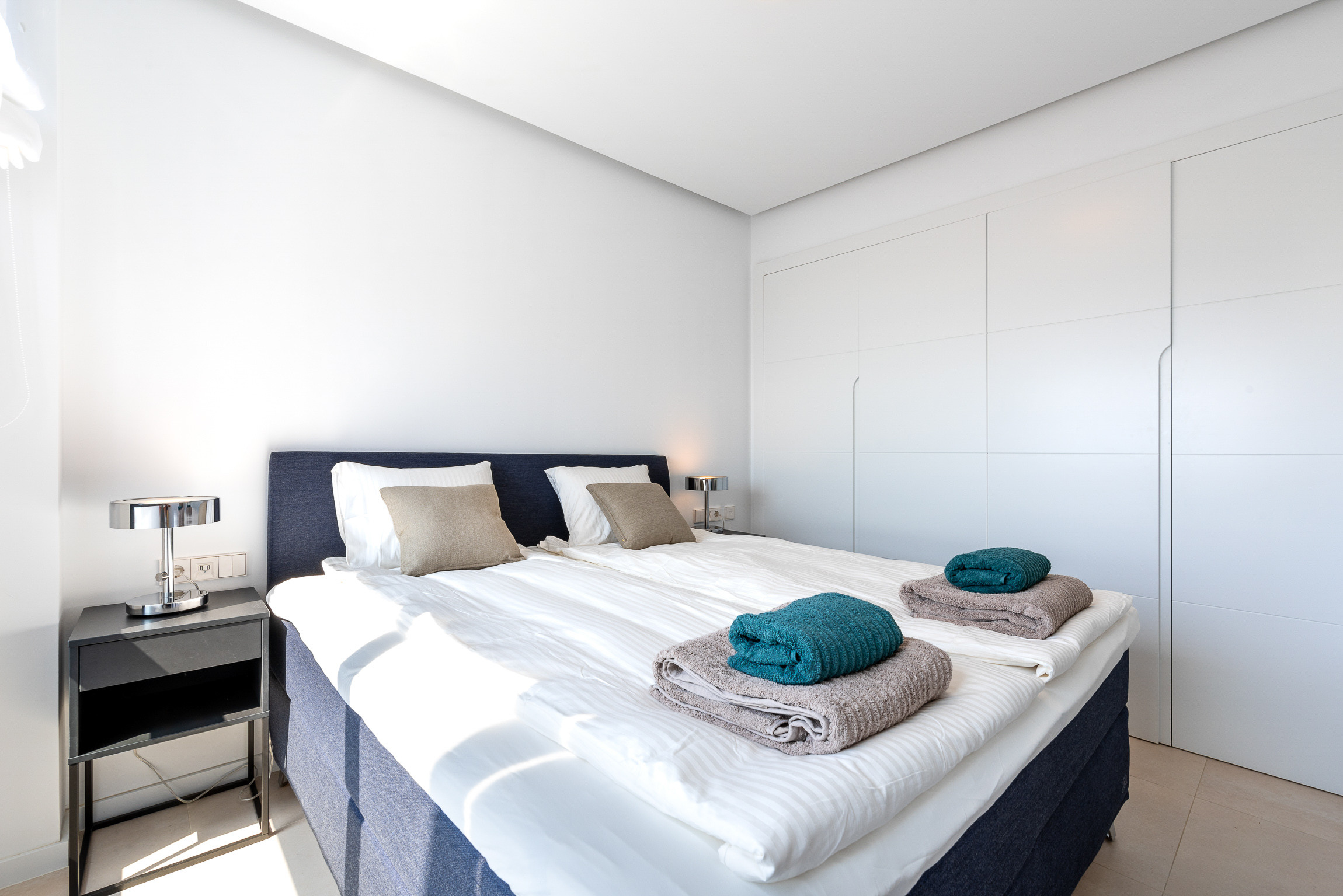 - Master Bedroom: Double room with king size quality bed from Jenssen (180x200cm), air conditioning, built-in wardrobe and en-suite bathroom with shower and hairdryer. Electric blinds.