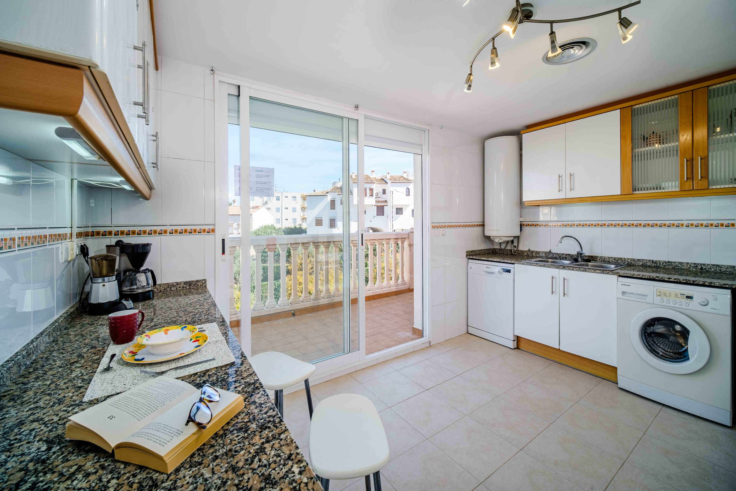 Incredible apartment with terrace, solarium, air conditioning and free wifi. Located in the exclusive Arenal Park II residence, it offers three communal swimming pools, for adults and children, impressive gardens with lawn, tennis court, paddle and basketball. It is ideally situated in a quiet and child-friendly neighbourhood, just 5 minutes walk from the sandy beach of Arenal de Jávea and all services, such as bars, restaurants and activities.
