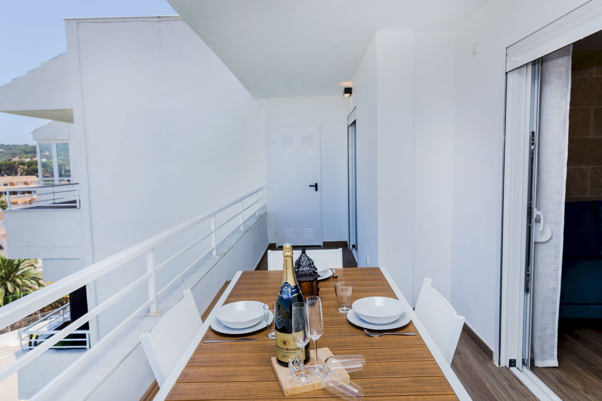 This stylish, modern and bright apartment has 89 m² and has been recently renovated and decorated. The property, distributed on a single level, has 3 beautiful bedrooms and 1 bathroom with shower, accommodating up to 6 people. The main bedroom has a double bed, built-in wardrobes and direct access to the terrace: the second bedroom has two single beds and the third a practical bunk bed. The apartment also offers a modern and fully equipped American kitchen with fridge, microwave, oven, freezer, washing machine, dishwasher, crockery and cutlery, kitchen utensils, coffee maker, toaster, kettle, and plates and bowls. The tastefully decorated living room has a comfortable sofa, flat-screen TV, air conditioning (living room only), free WiFi and double doors that open to a wonderful terrace. On the terrace we can enjoy a large dining table and wonderful views of the pool, the sea and the mountain. In the common areas of the urbanisation, you can enjoy an impressive garden with lawn, children's area and a large pool, fenced and with an area for children.
