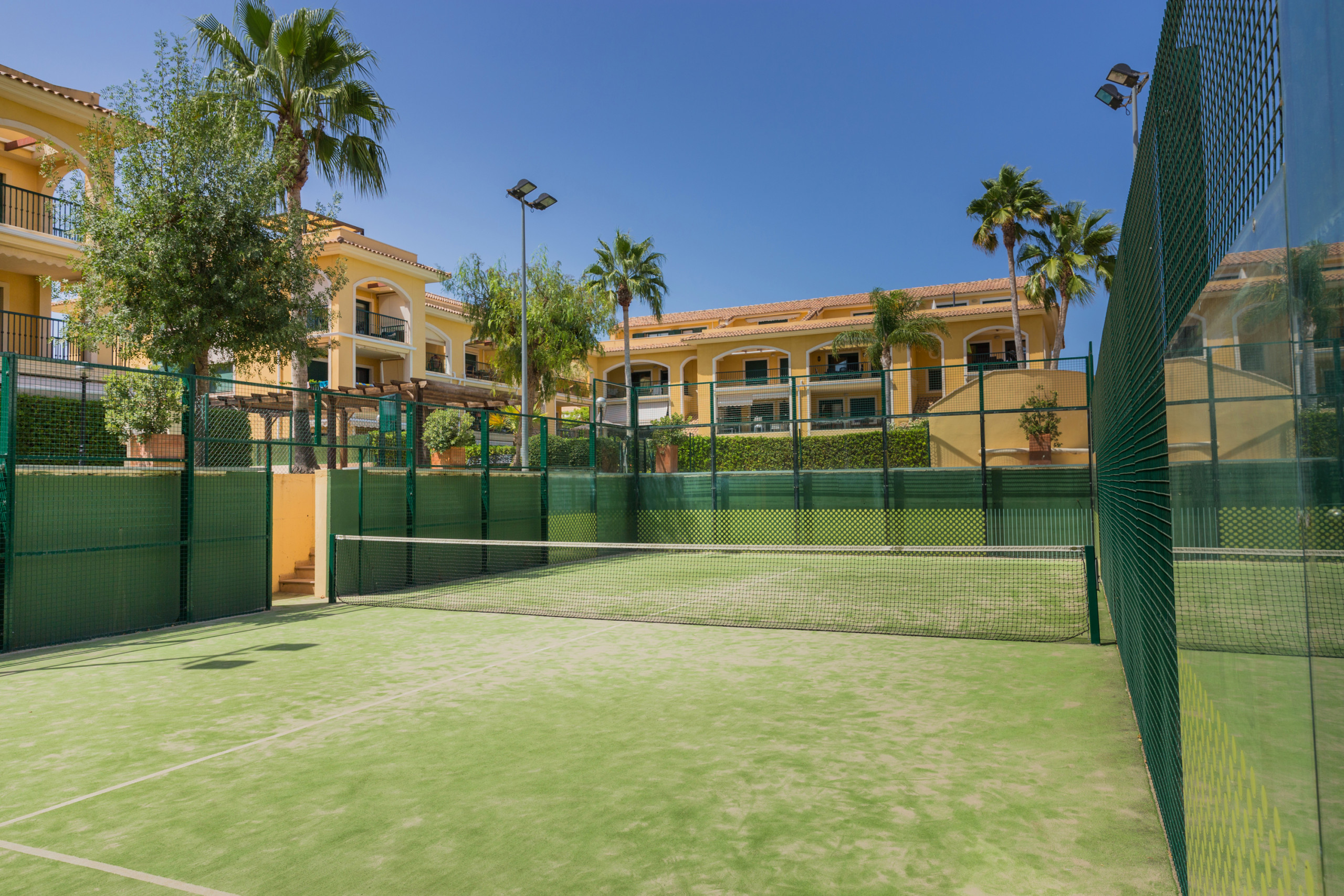In the common areas of the residence there is a garden with a large pool for adults and a smaller one for children, a paddle court and a play area for the little ones.