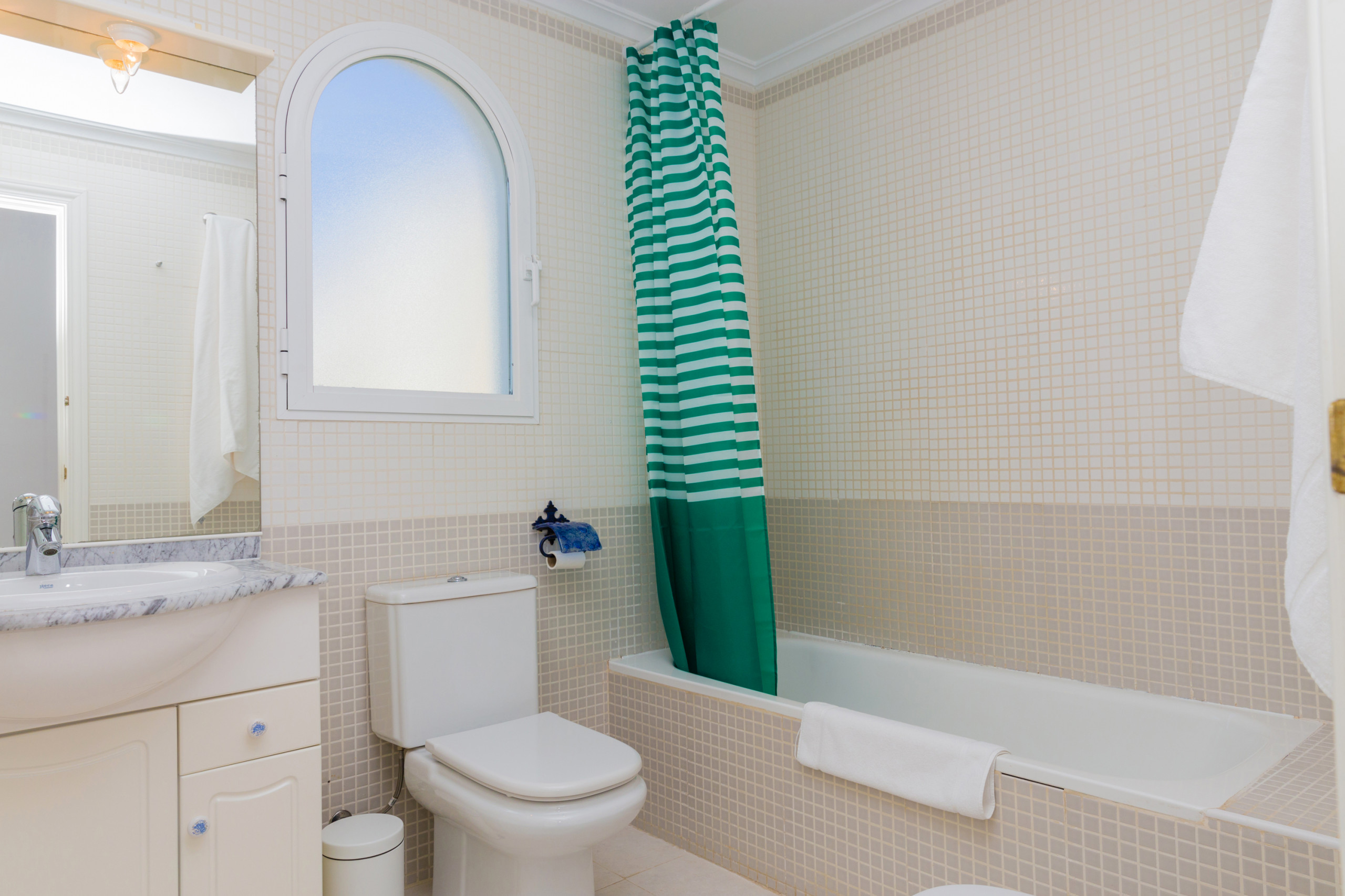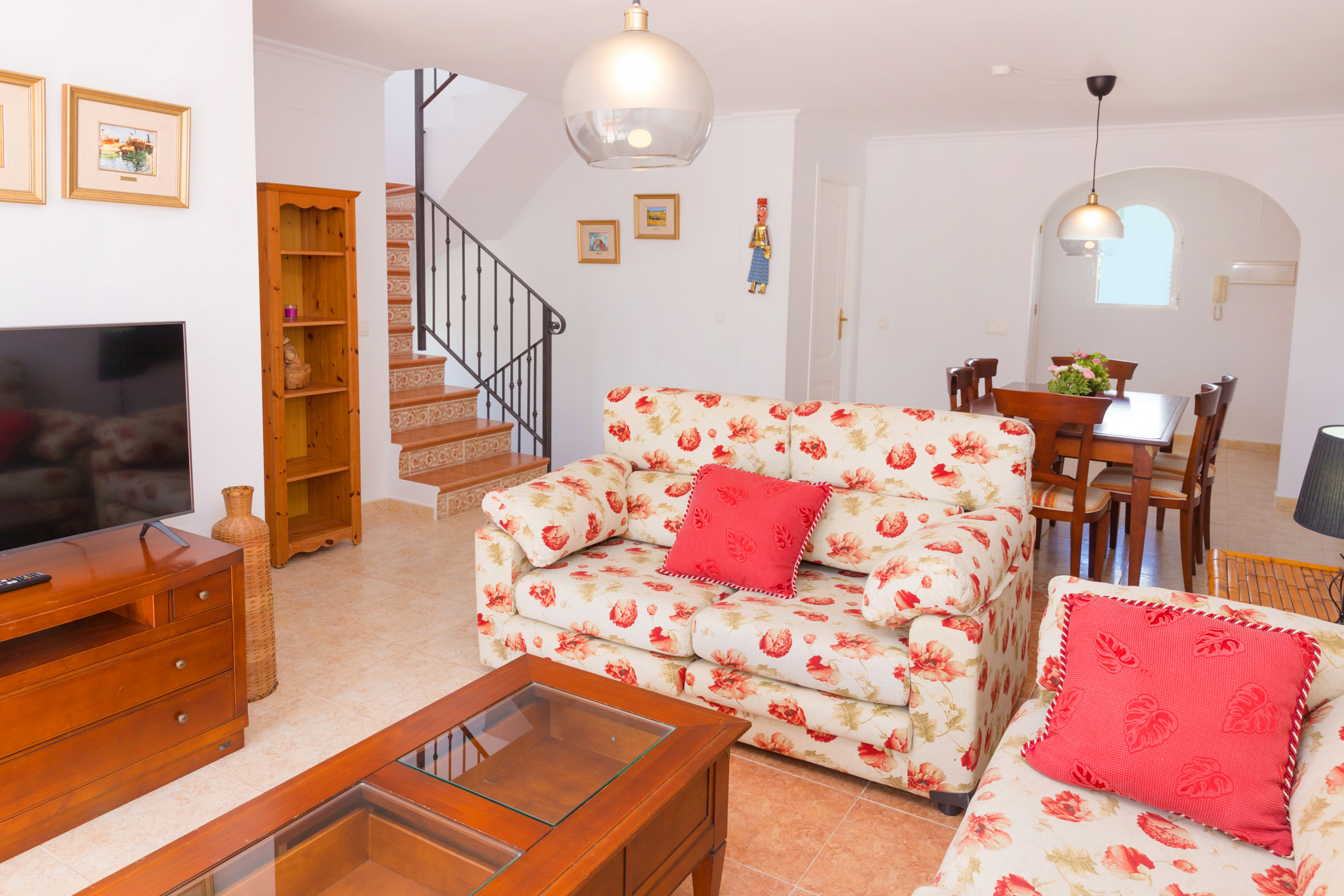 On the main floor is the spacious living-dining room with comfortable sofas, large dining table, flat-screen TV, free WiFi and double doors that open to a beautiful covered terrace. On this floor is the independent fully equipped kitchen with refrigerator, microwave, oven, freezer, washing machine, dishwasher, crockery and cutlery, kitchen utensils, coffee maker, toaster, kettle, juicer and plates and bowls. Also on this floor is a room with a double bed and a bathroom. The other two bedrooms are on the ground floor with two single beds each and another bathroom.