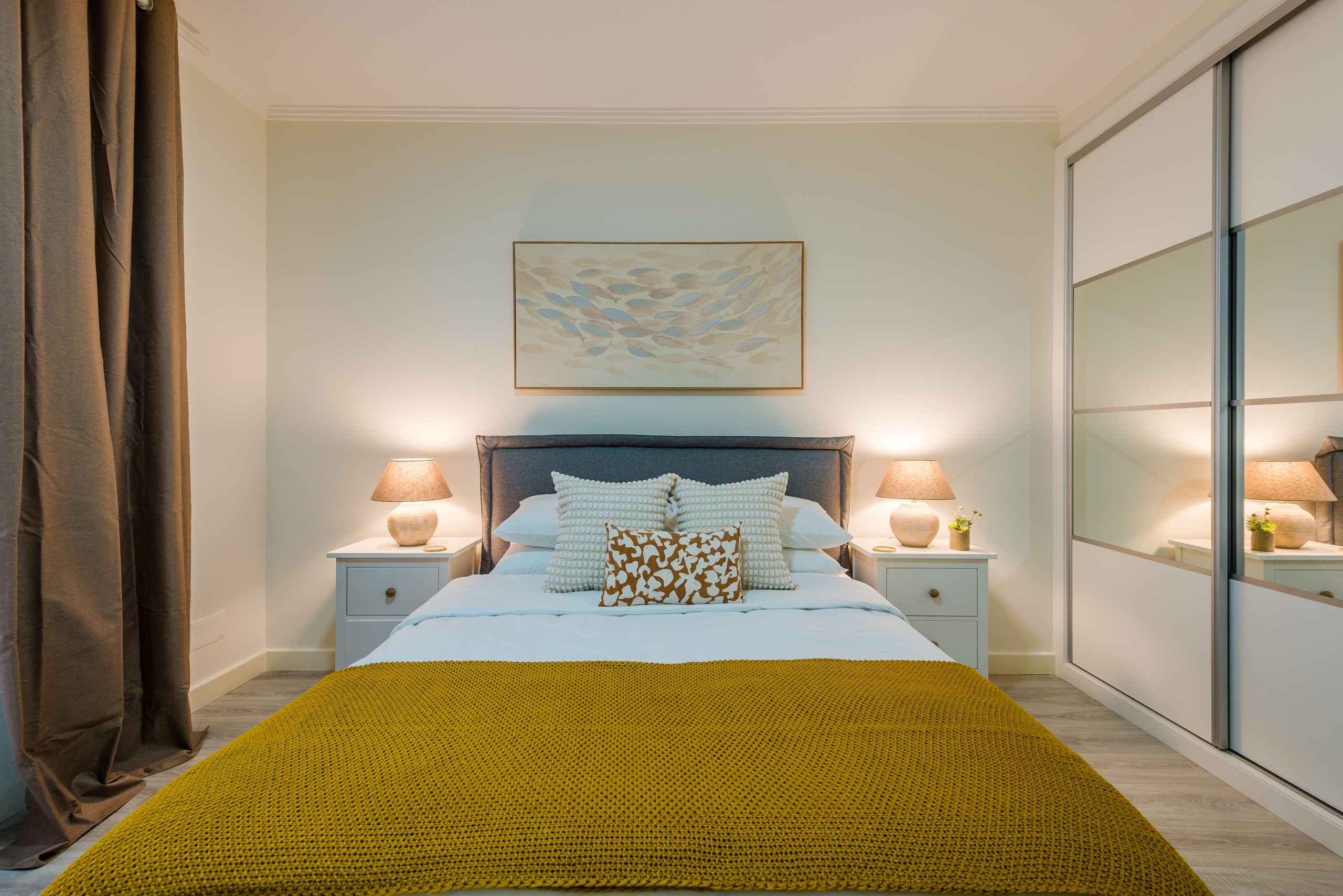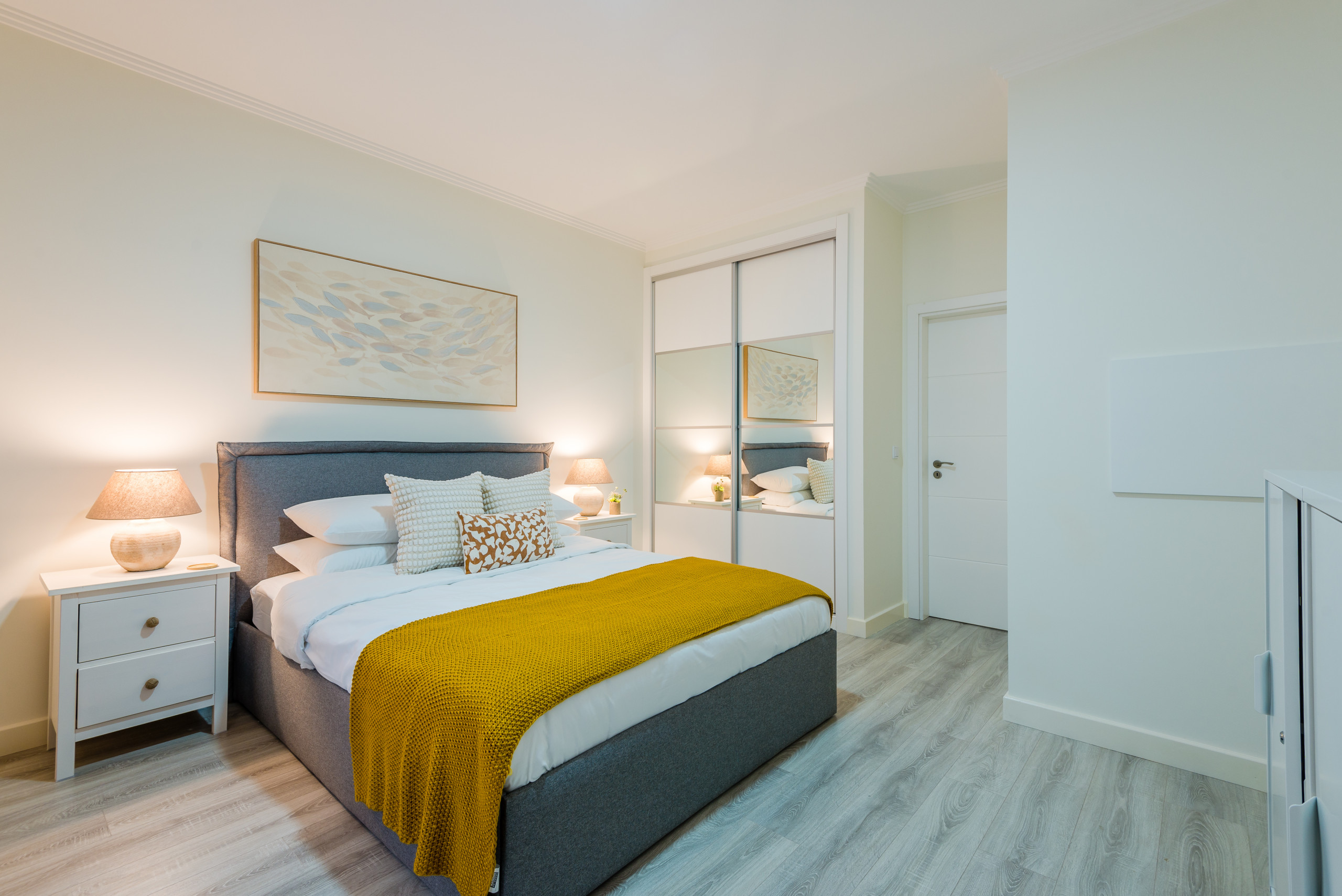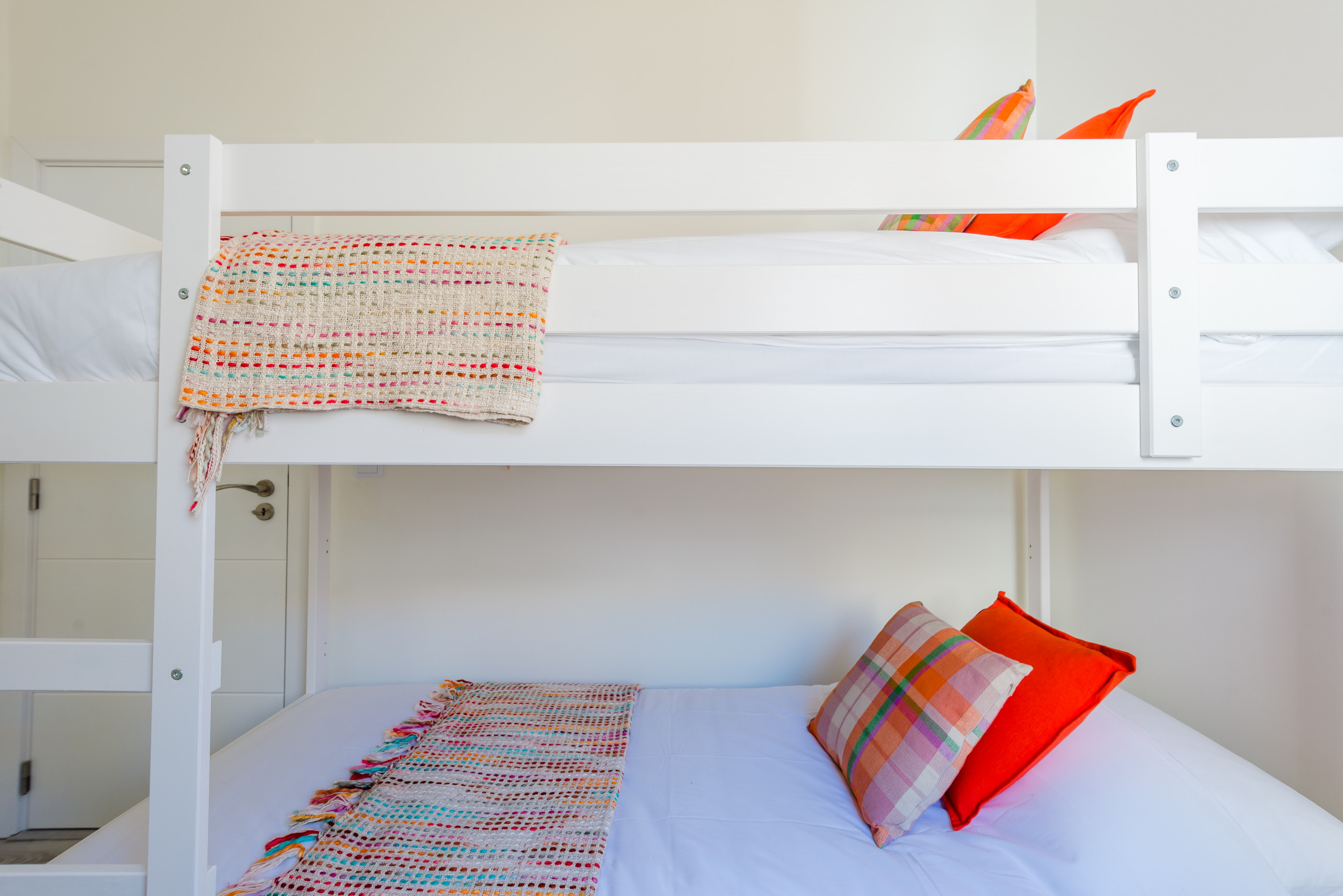 This modern apartment has capacity for 6 people, with 2 double bedrooms (one en-suite) and a third bedroom with two bunk beds. There is an additional shared bathroom.