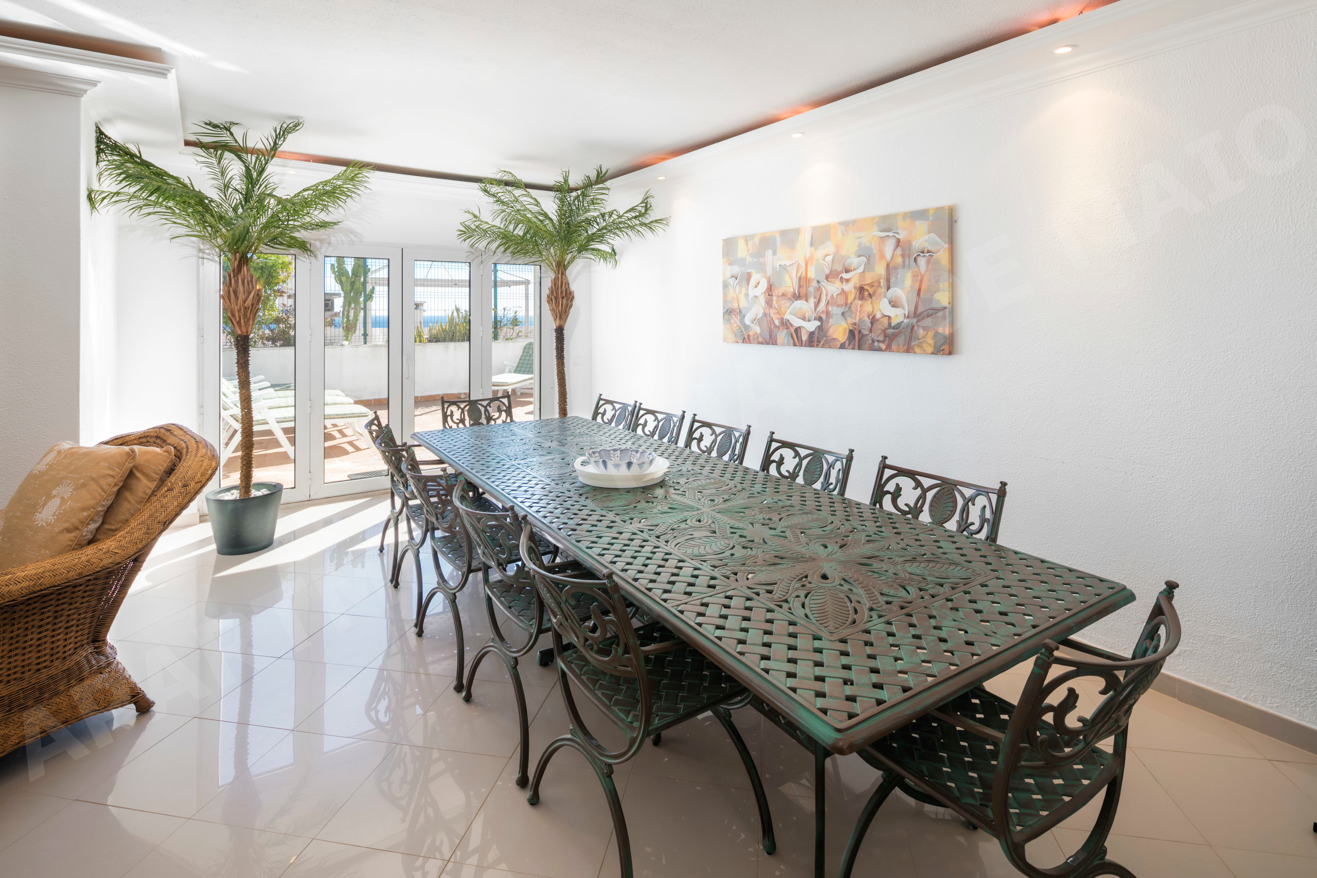 A spacious south-facing terrace connected to the open-plan living and dining area, perfect for morning coffee or sunset drinks.