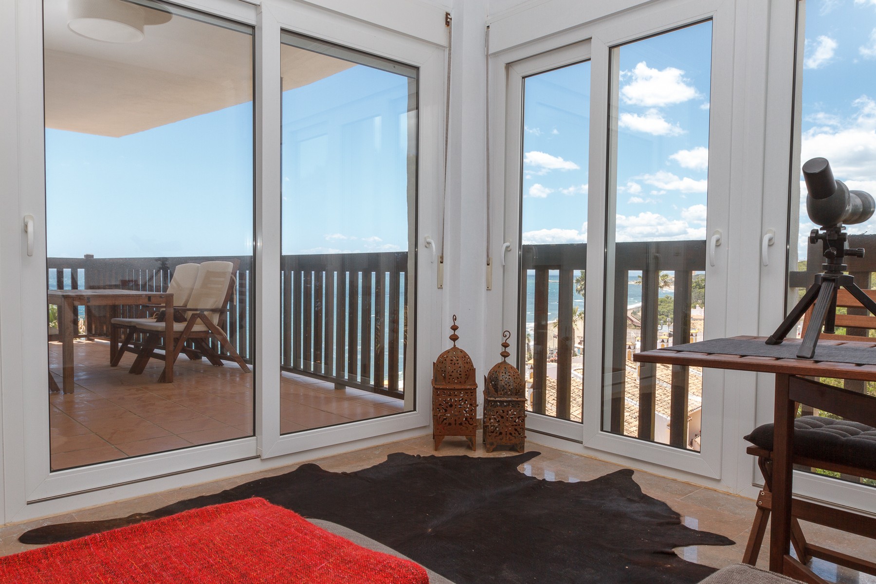 Living room with dining table and comfortable sofa where you can also enjoy the spectacular view. The kitchen is equipped with, dishwasher, oven, Nespresso coffee maker, etc.