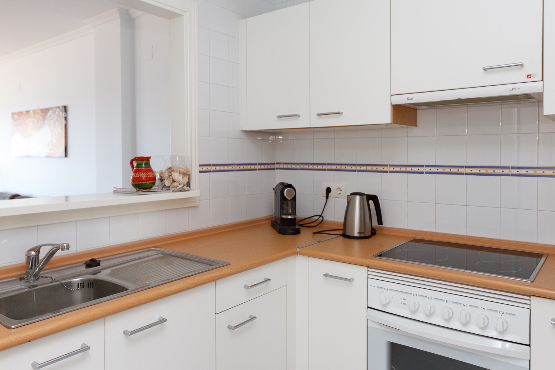 The apartment is conveniently furnished for 1-4 persons with 2 bedrooms, both with double bed, wardrobe, air conditioning and direct access to terrace with sea views. Master Bedroom has a bathroom en-suite.