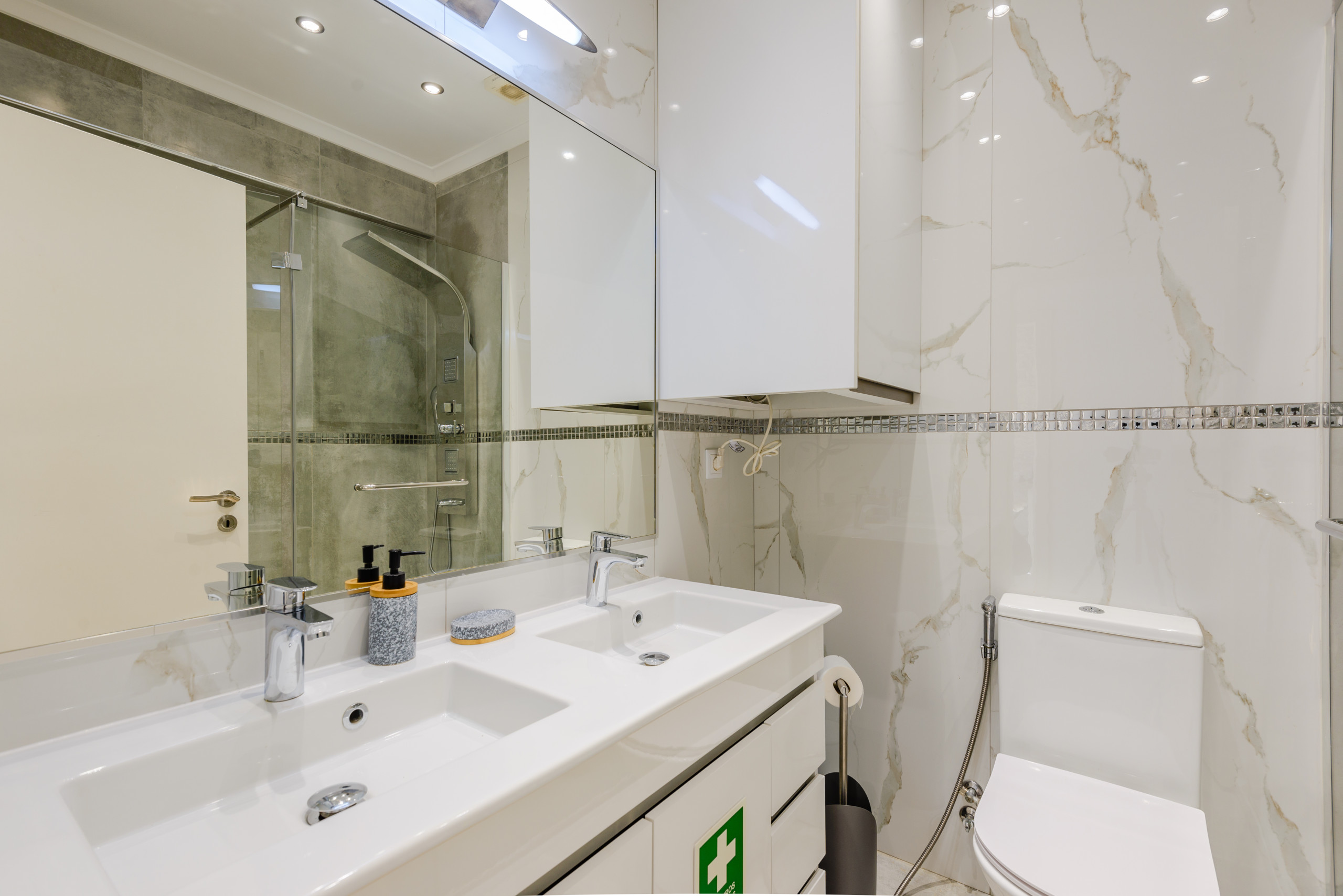 Located on the 8th floor of an older residential building, the apartment is easily accessible via a lift and boasts distant sea views from the balcony. With 75 m² of space, it features a bright and airy living area, a fully equipped independent induction kitchen, and air conditioning throughout.