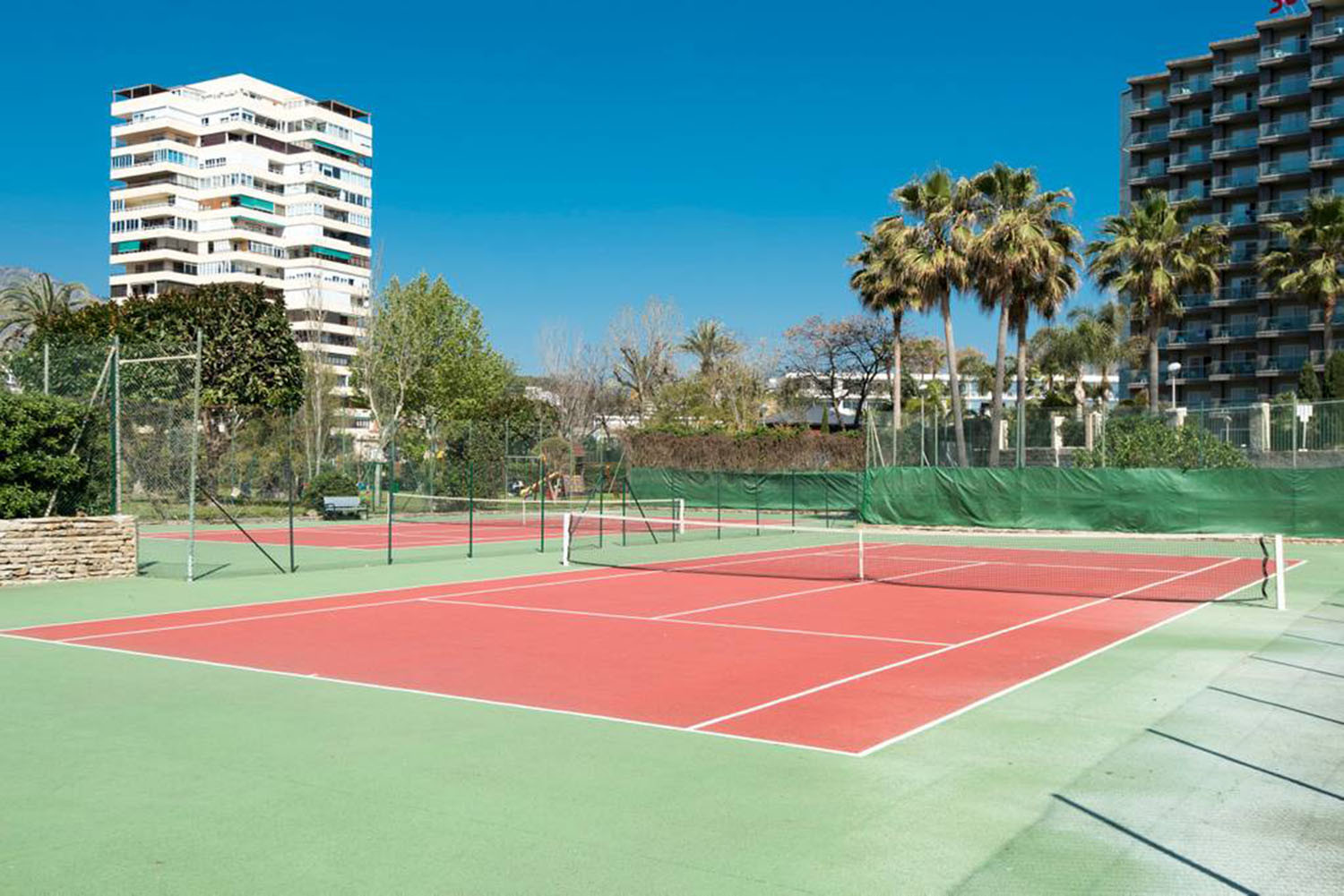 The accommodation is equipped with the following items: lift, garden, garden furniture, fenced garden, 15 m² terrace, barbecue, iron, internet (Wi-Fi), hair dryer, balcony, childrens area, tennis court, paddle tennis court, jacuzzi, central heating, air conditioning throughout the house, communal+children's swimming pool, open-air parking the same building, 3 fans, 1 TV, tv satellite (Languages: Spanish, English, German, Dutch, French, Russian, Swedish, Norwegian), radio, DVD.