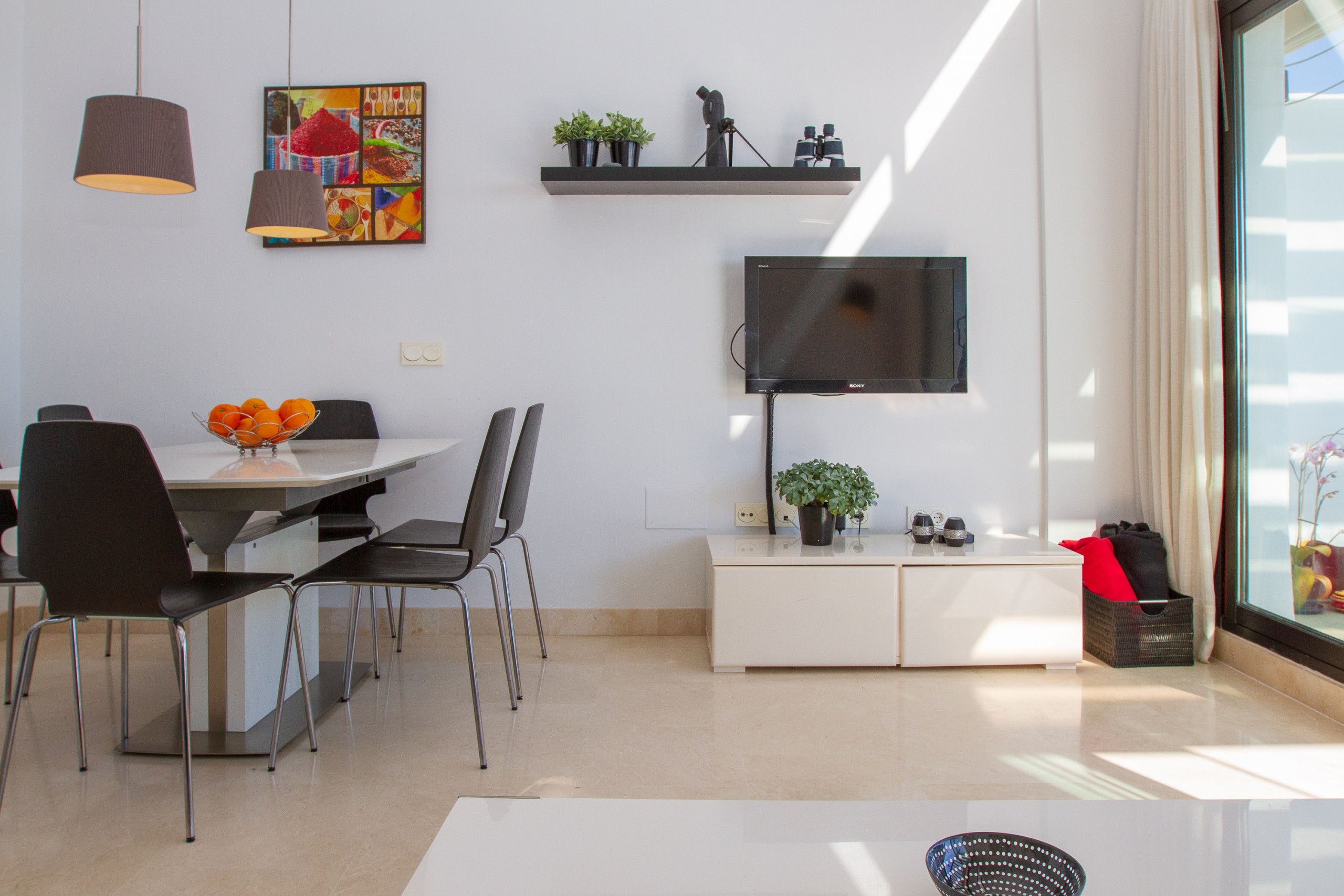 This magnificent penthouse combines coastal charm, modern comfort and breathtaking sea views — an exceptional place for your next family holiday, retirement getaway, or golf trip in southern Spain.