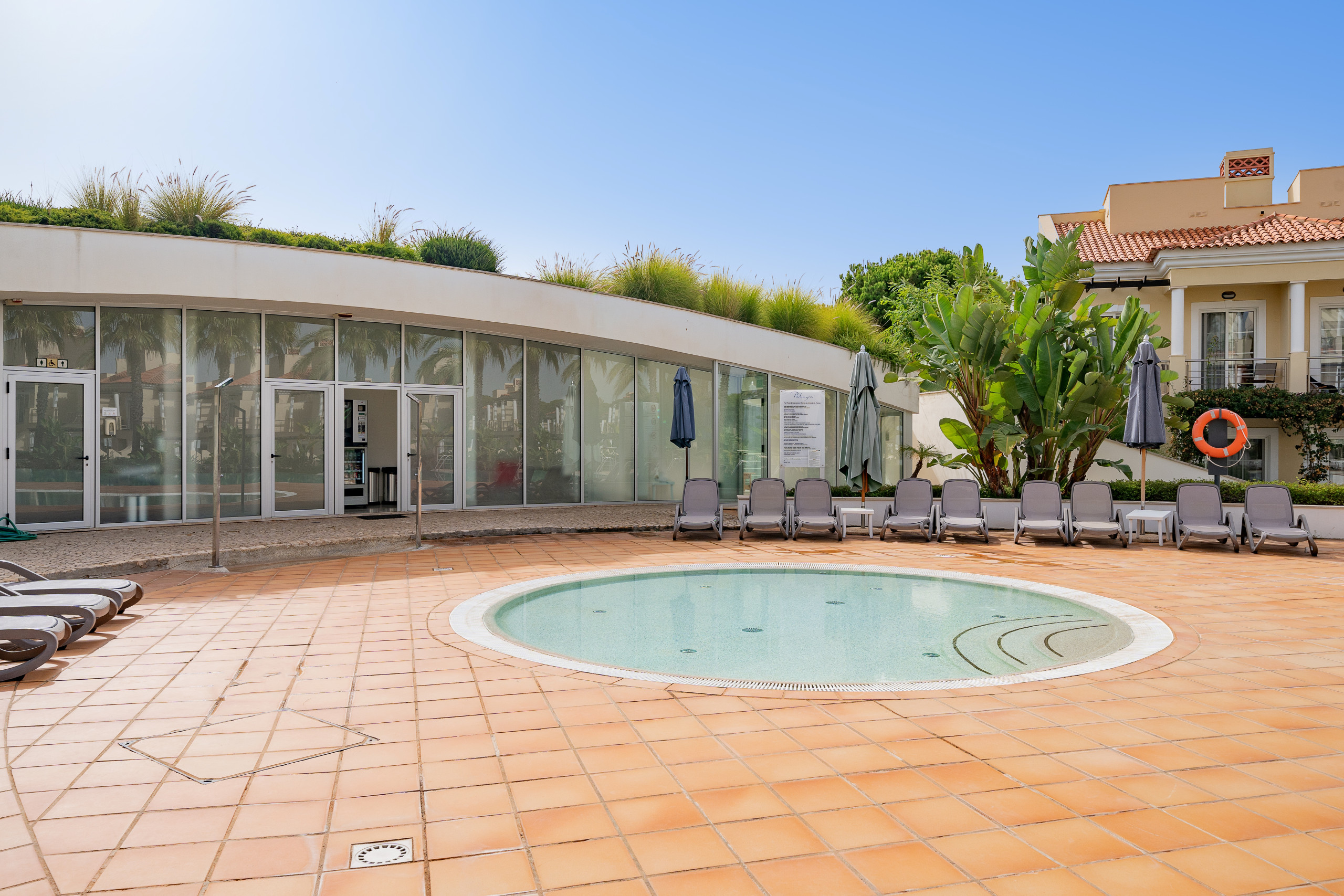 Guests have access to manicured gardens and a large communal swimming pool just a few steps away. The property is just minutes from the renowned Vila Sol Golf Course and within a short drive of Vilamoura Marina, golden beaches, restaurants, and family attractions.