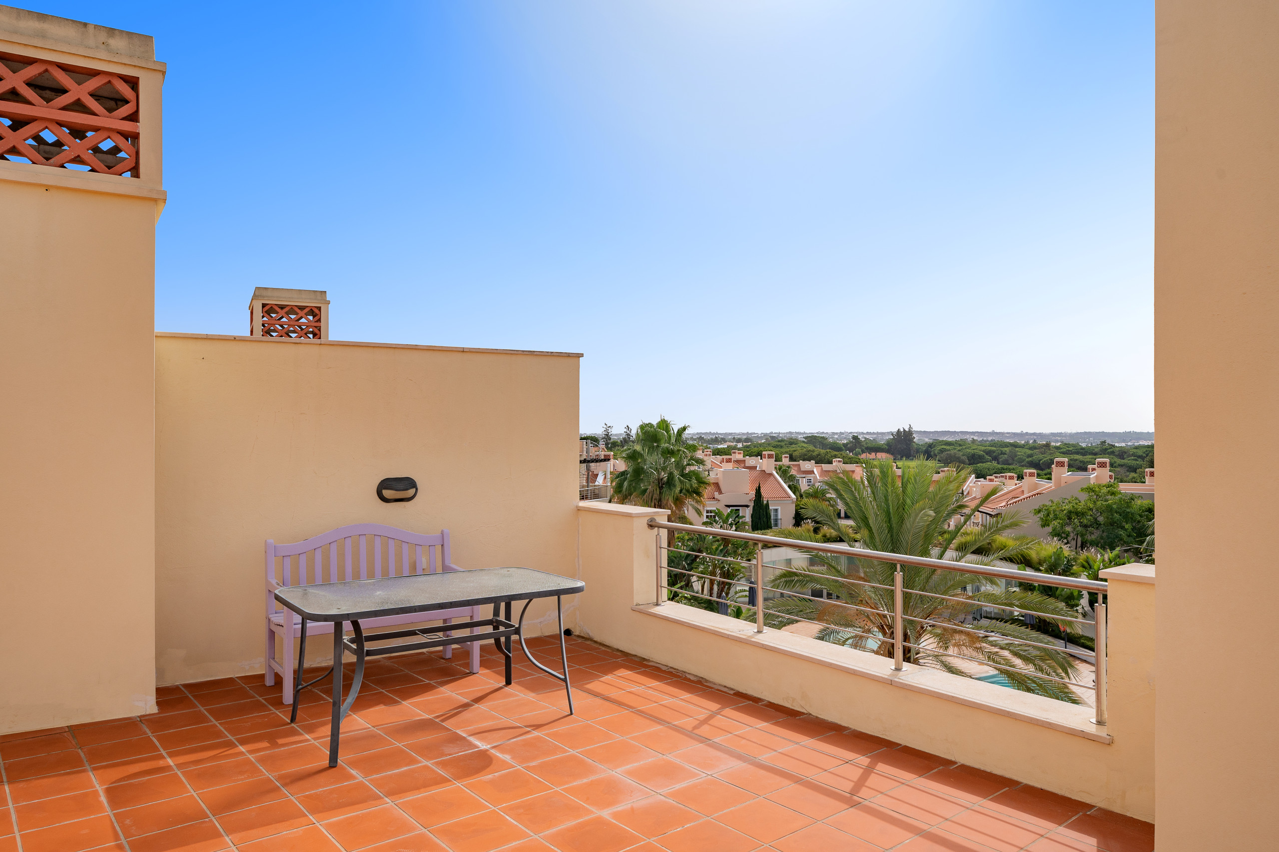 Step outside to an enormous private roof terrace—ideal for sunbathing, family meals, or simply enjoying the Algarve sunshine. From here, you’ll enjoy distant views of the Atlantic Ocean and the beautifully maintained surrounding grounds.