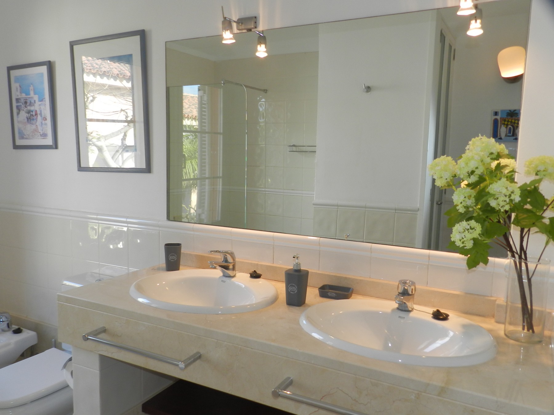 The property has 250m2 built above ground level on a plot of 380m2. It consists of 3 double bedrooms on the upper floor, one of them en suite with balcony overlooking the garden and pool and bathroom inside, the other with two single beds and views of the garden and the third one with double bed and views of the rear garden.