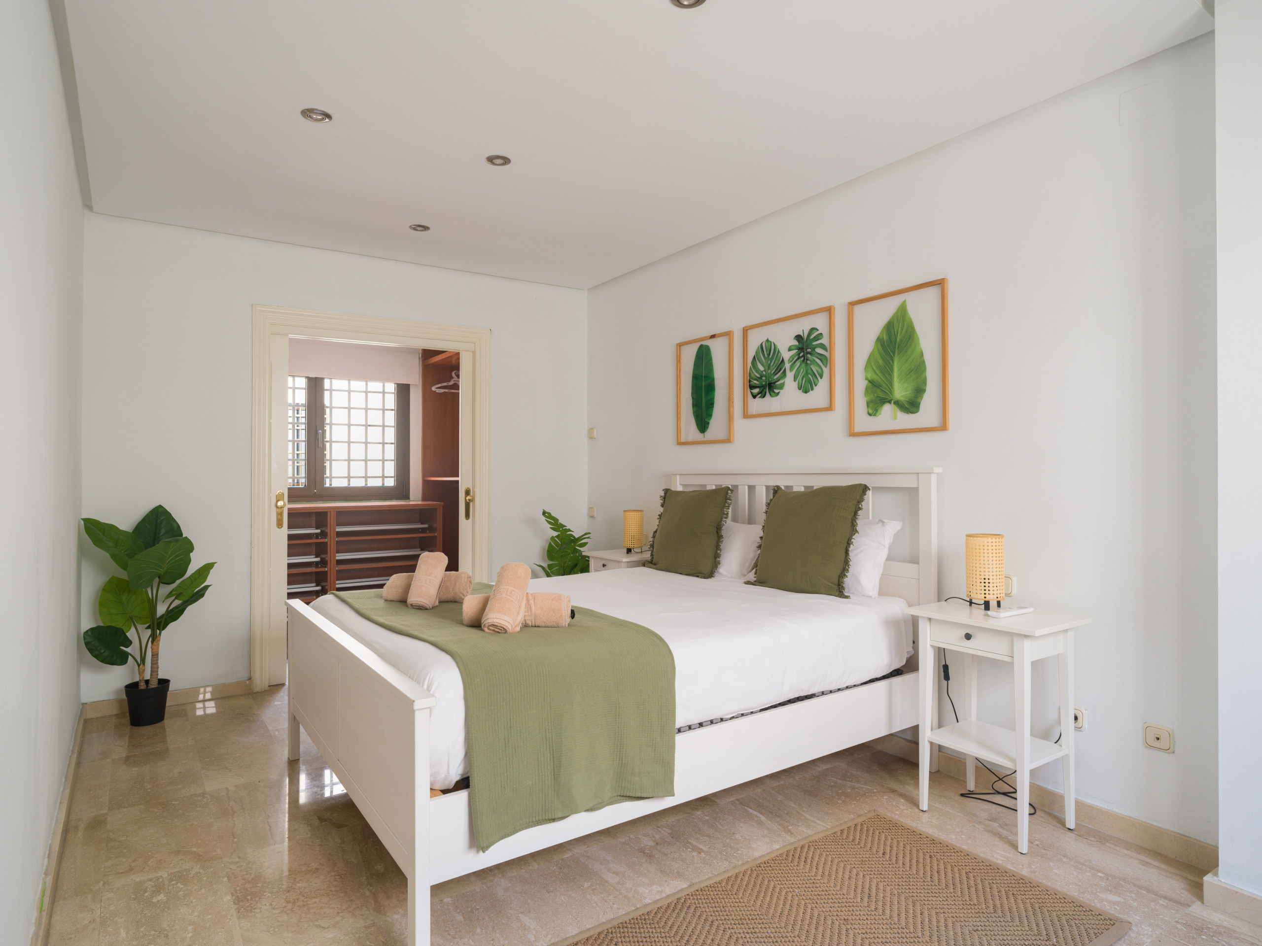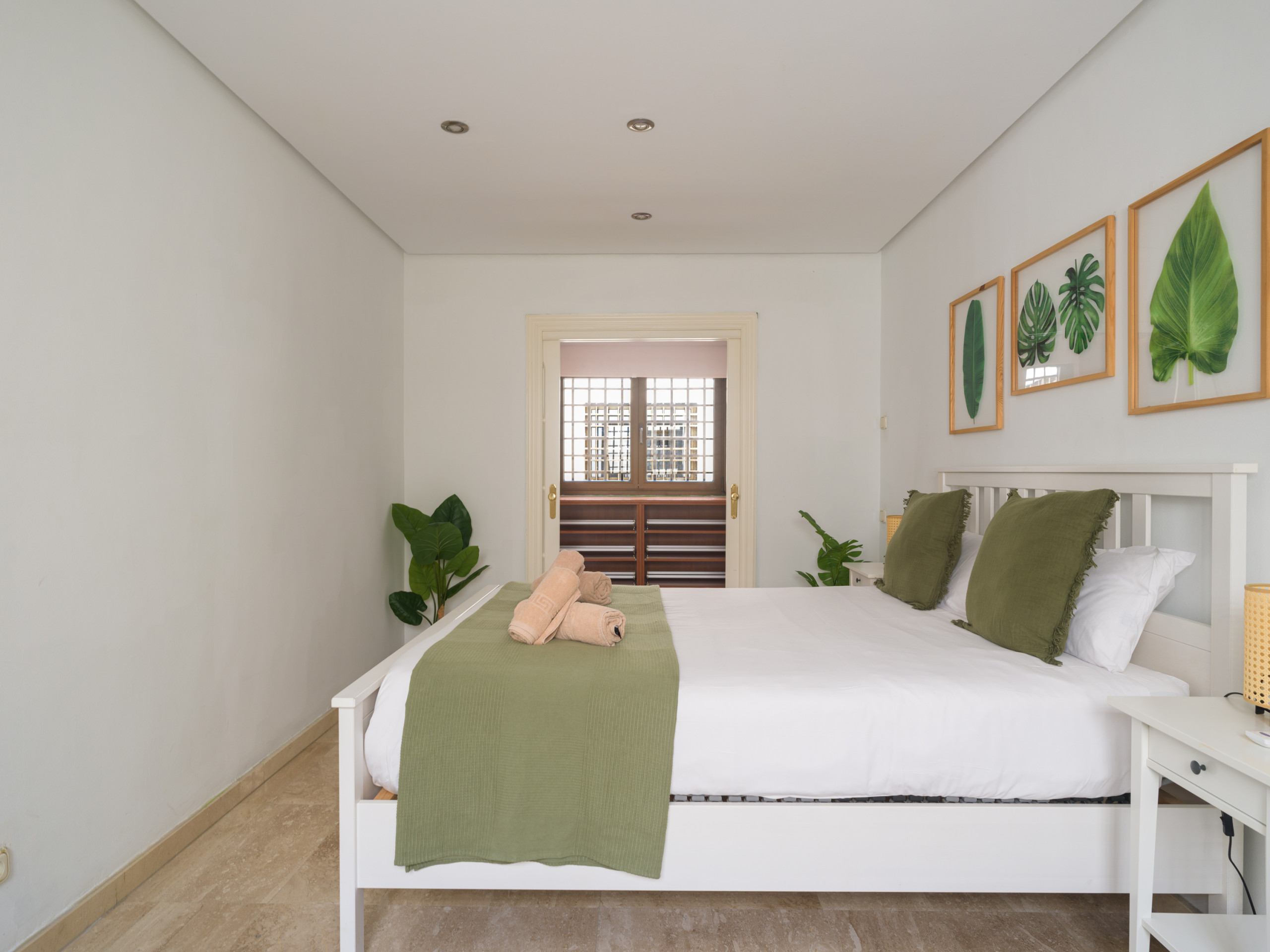 The property has two air-conditioned bedrooms, both presented in a modern and comfortable style. The bedrooms are furnished one suite with double bed (1.60 meters wide), dressing room and bathroom and the other with two single beds (0.9 meters wide each) with quality bedding, ensuring a restful night's sleep for guests. In addition, there are fitted wardrobes providing ample storage space.