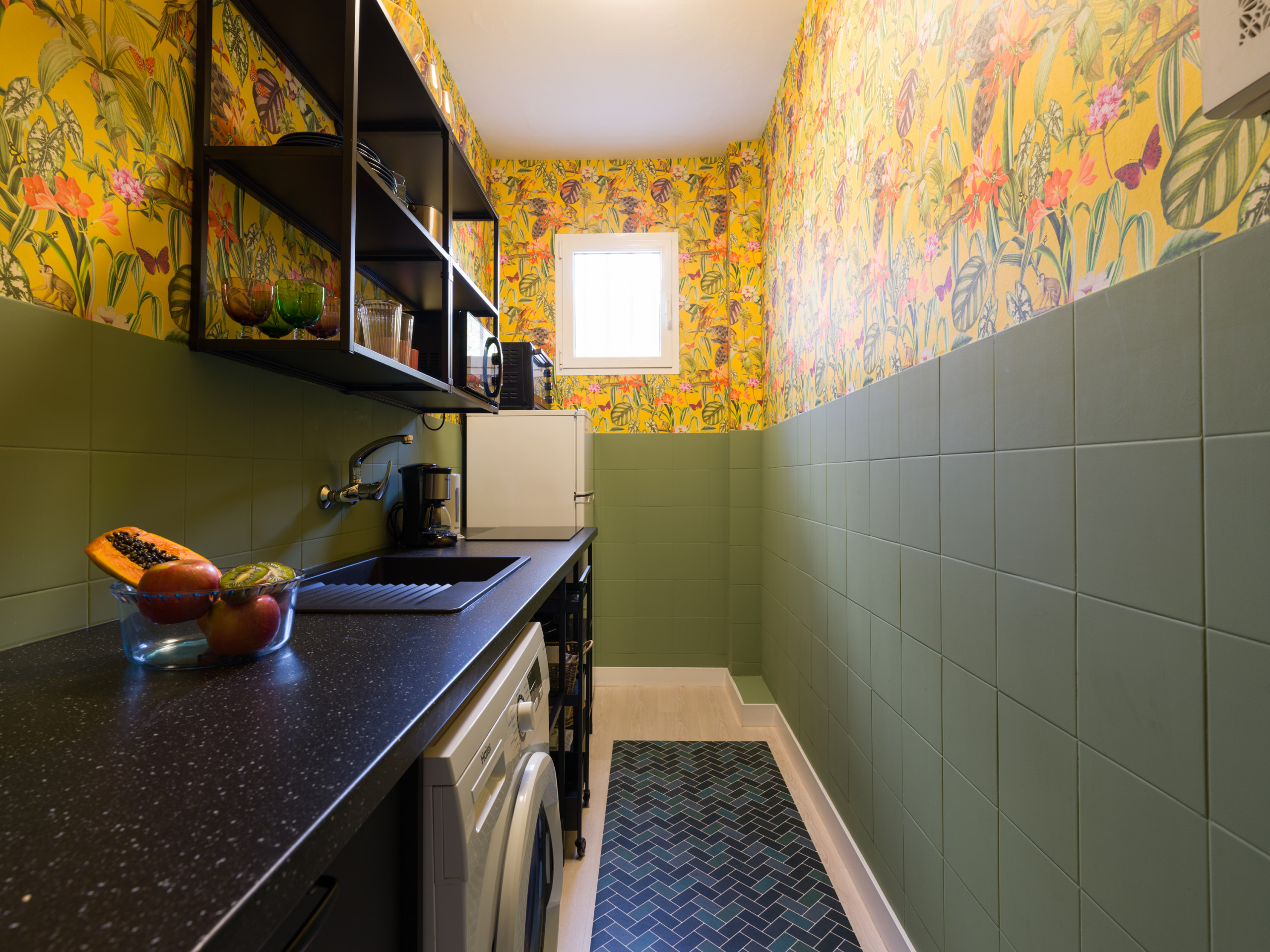 This property with character, stands out in its decoration for its bohemian and modern style. With vibrant colours in the bathroom and kitchen and Asian paintings and textile details in the bedroom and living room, it is a very special house.