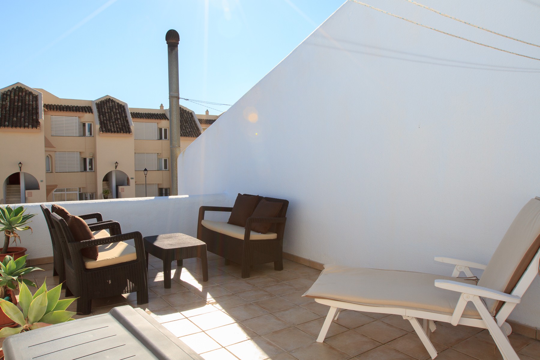 At the top floor, you will find a beautifully furnished roof terrace with outdoor table and chairs for 4 people and a sun bed and there is a lovely view to the Mijas Mountains.