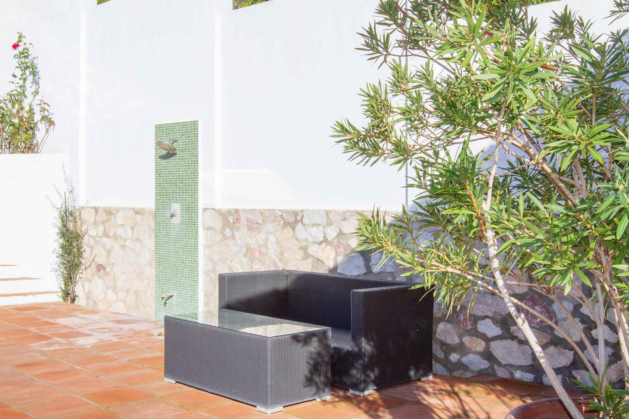 The villa is very spacious inside as well as outside and there are several cosy corners and terraces on the plot.
