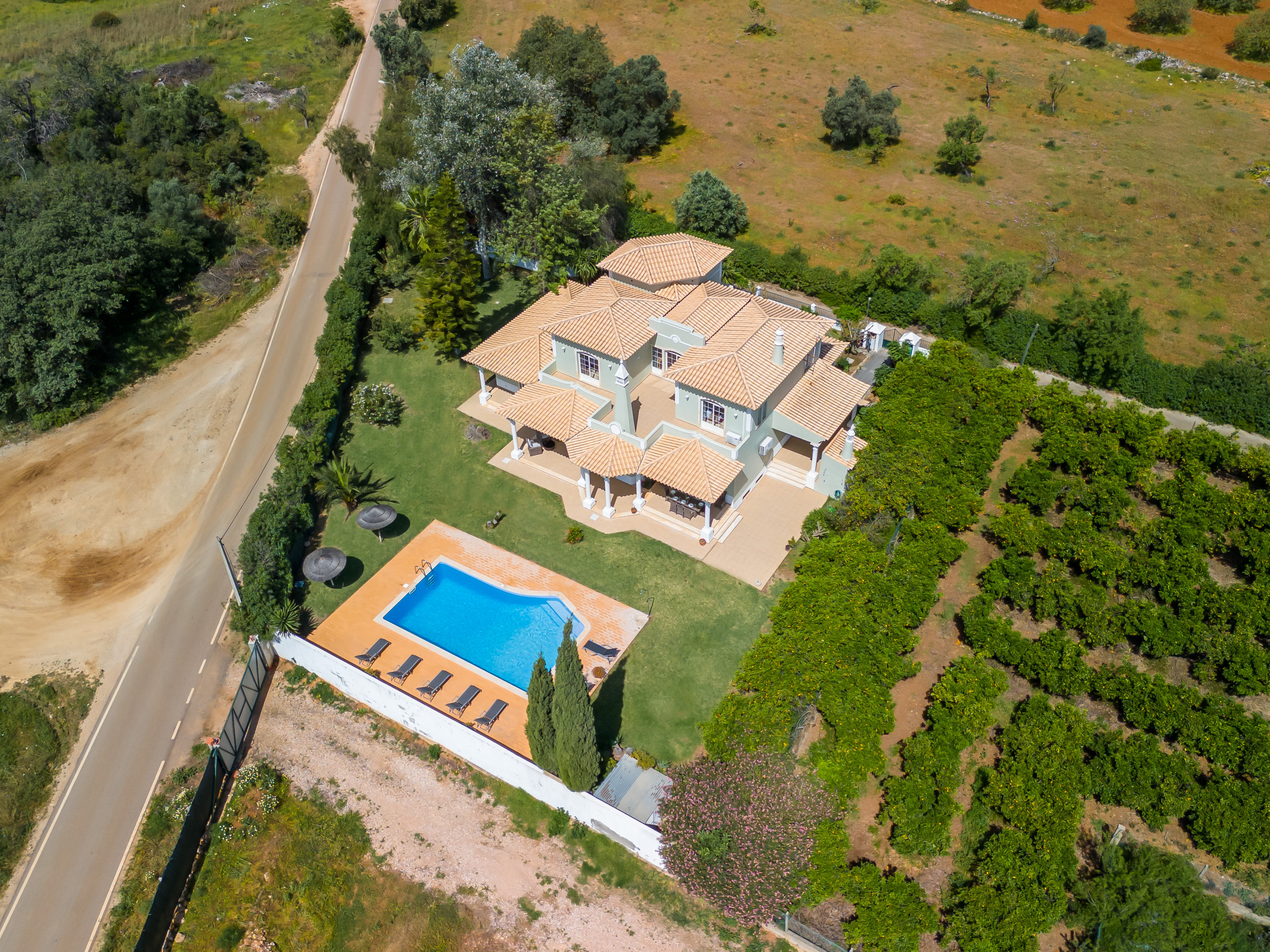 Large property in rural setting with a lovely size pool. Busy road, car is absolutely essential. Plenty of seating areas.