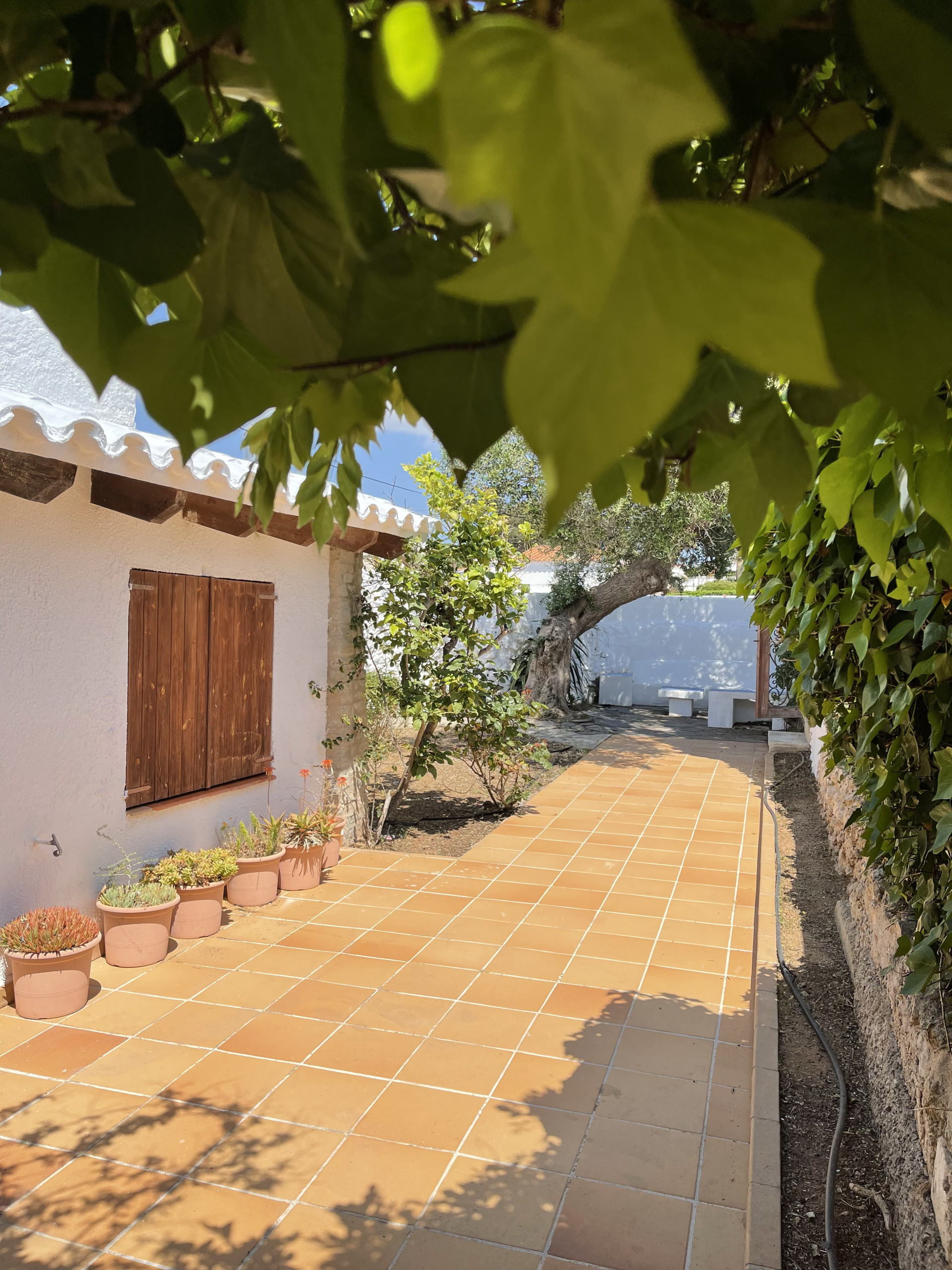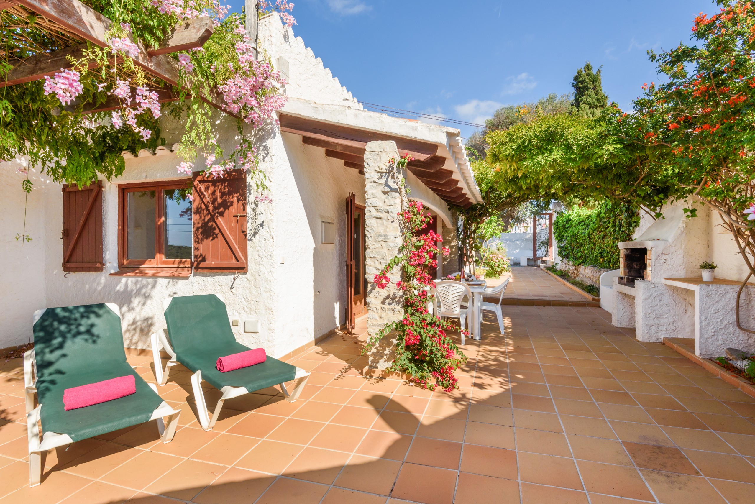 This traditional menorquin villa is 800m from the sandy beach of caln porter. It is ideal for families and close to all bars and restaurants and shops. It provides you with a private pool area, with great views of the surrounding areas. Also a barbecue area and covered terrace for you to enjoy outside dining amongst the gardens. It has 3 bedrooms with air con and has a spacious lounge area with satelite tv, dvd and wifi included. and fully equipped kitchen. It is only 1.1km from the cova den xoroi.