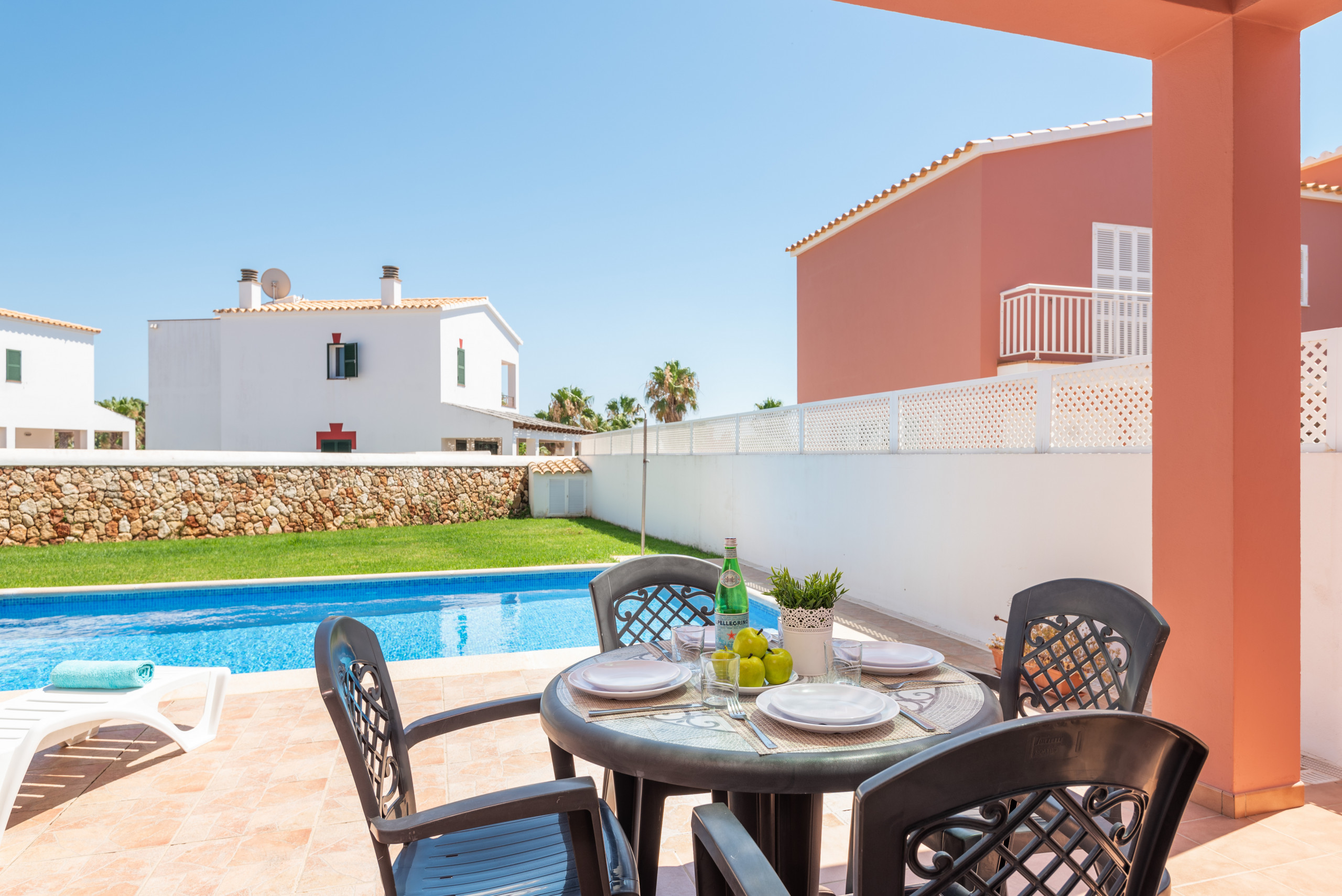 Logement de très bonne qualité, très spacieux, très calme et bien équipée. La localisation est calme et proche de la mer et de Ciutadella. La piscine et jardin très bien également. BBQ, table de tennis de table et billard en sus.