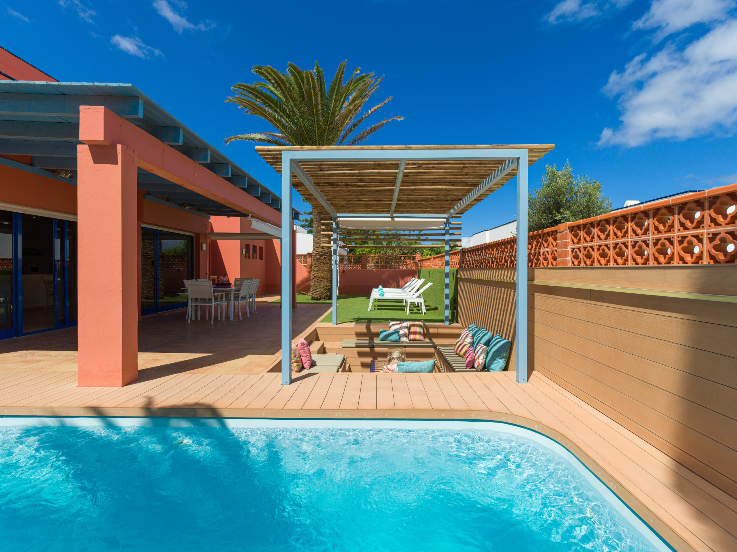 Enjoy a family, couple or friends holiday in this cosy and well-equipped Villa in Corralejo, Fuerteventura, managed by CanariasGetaway. Located just a few steps from the beach, this accommodation offers a relaxing and comfortable experience.