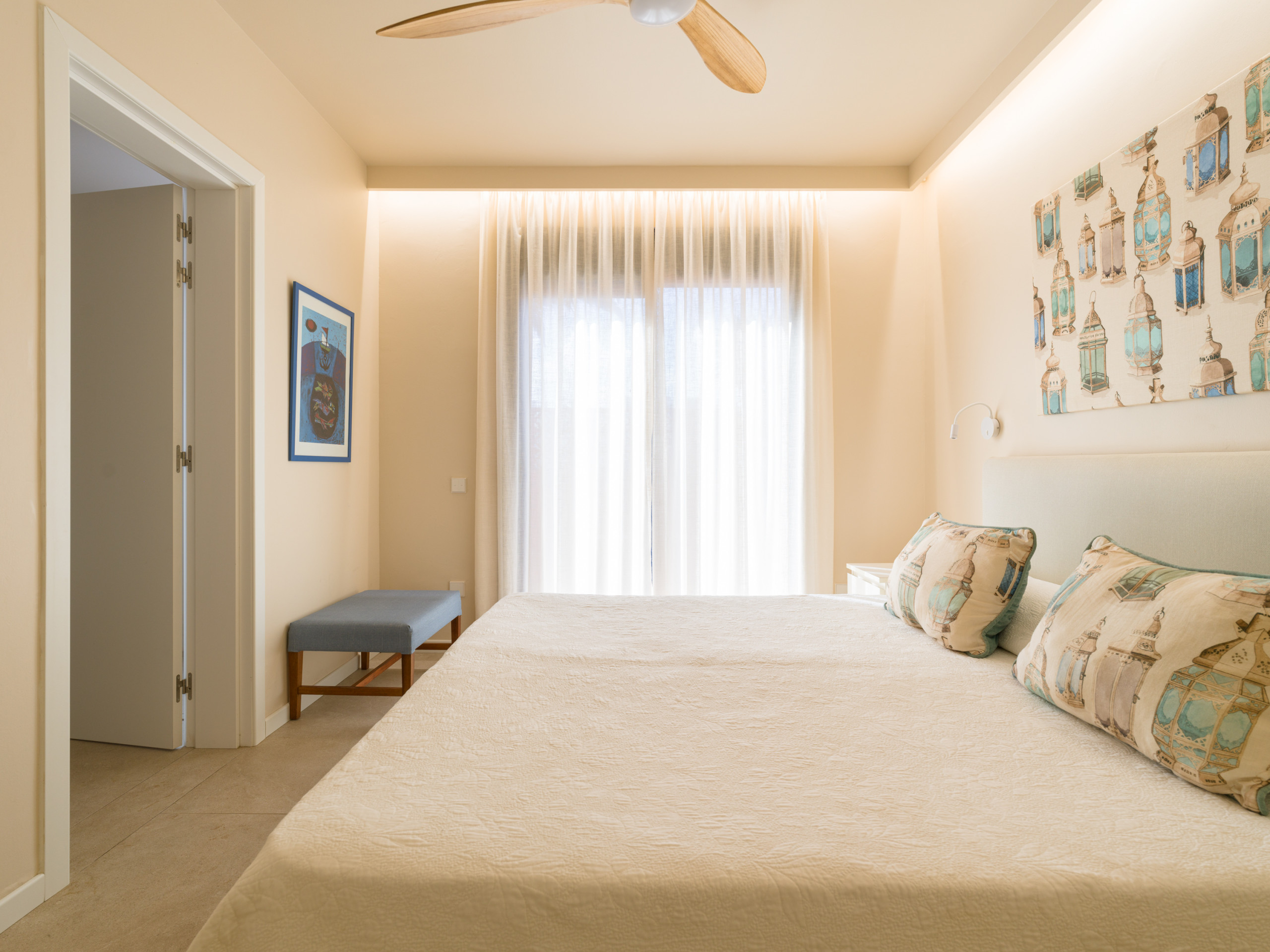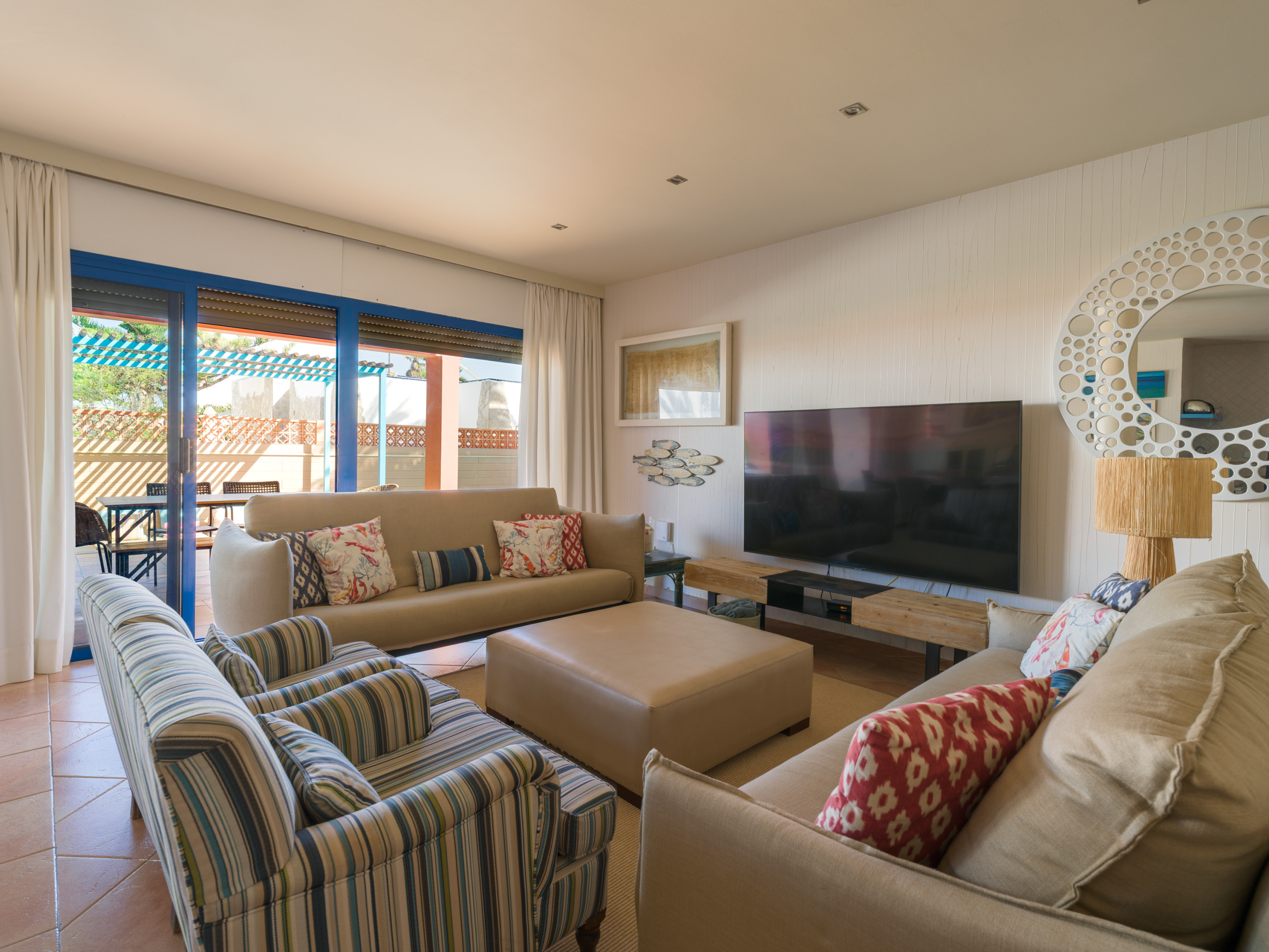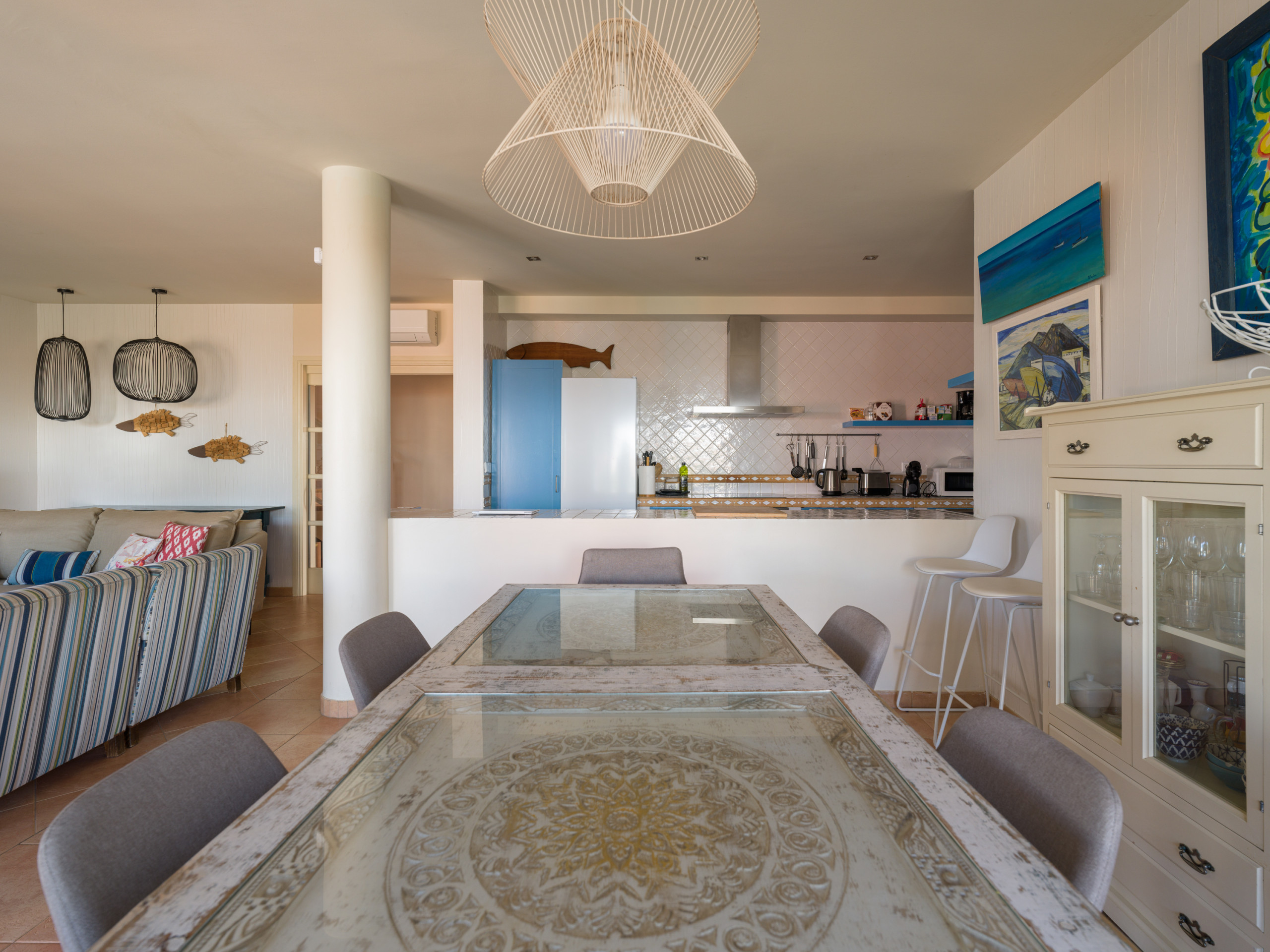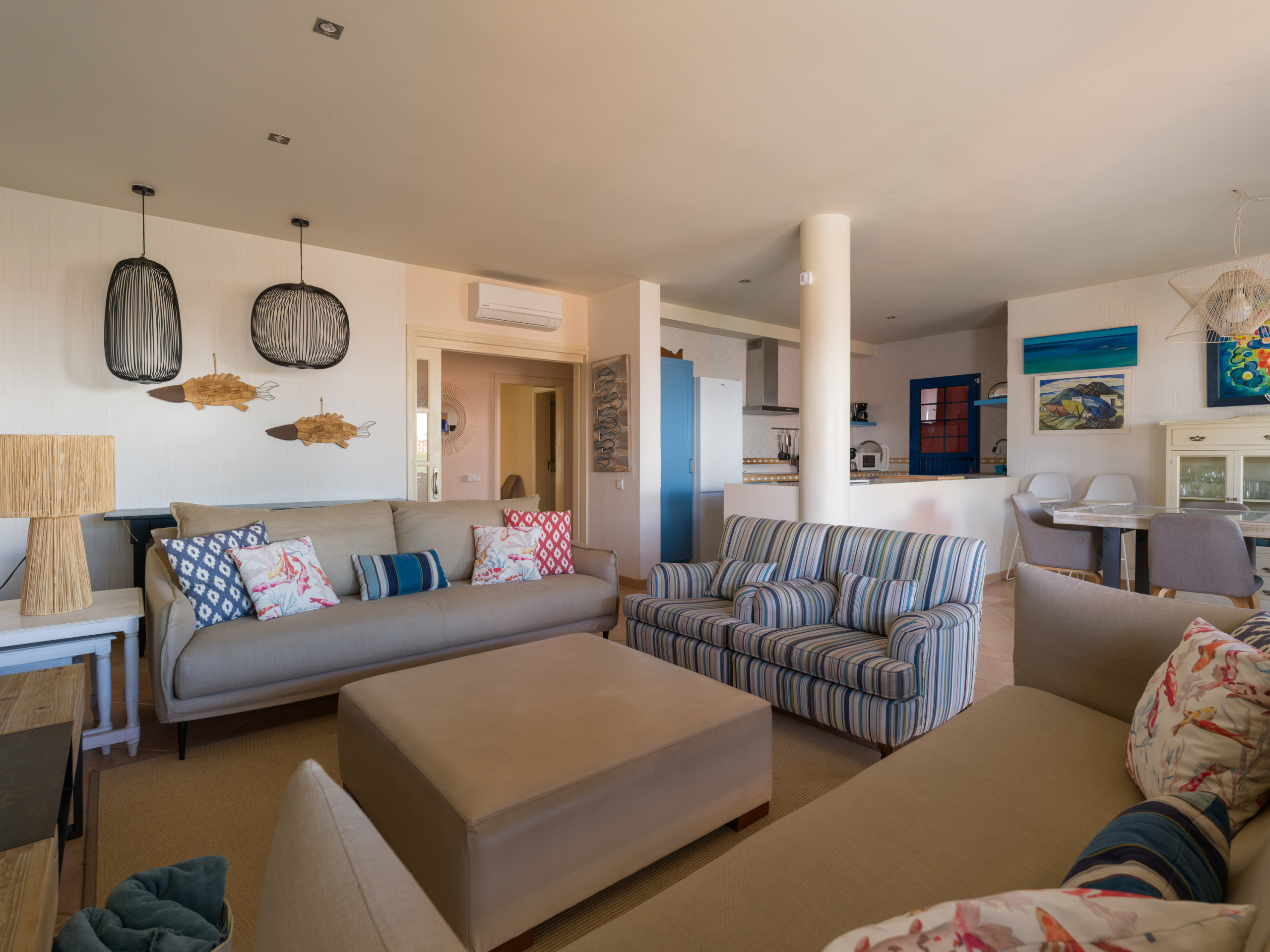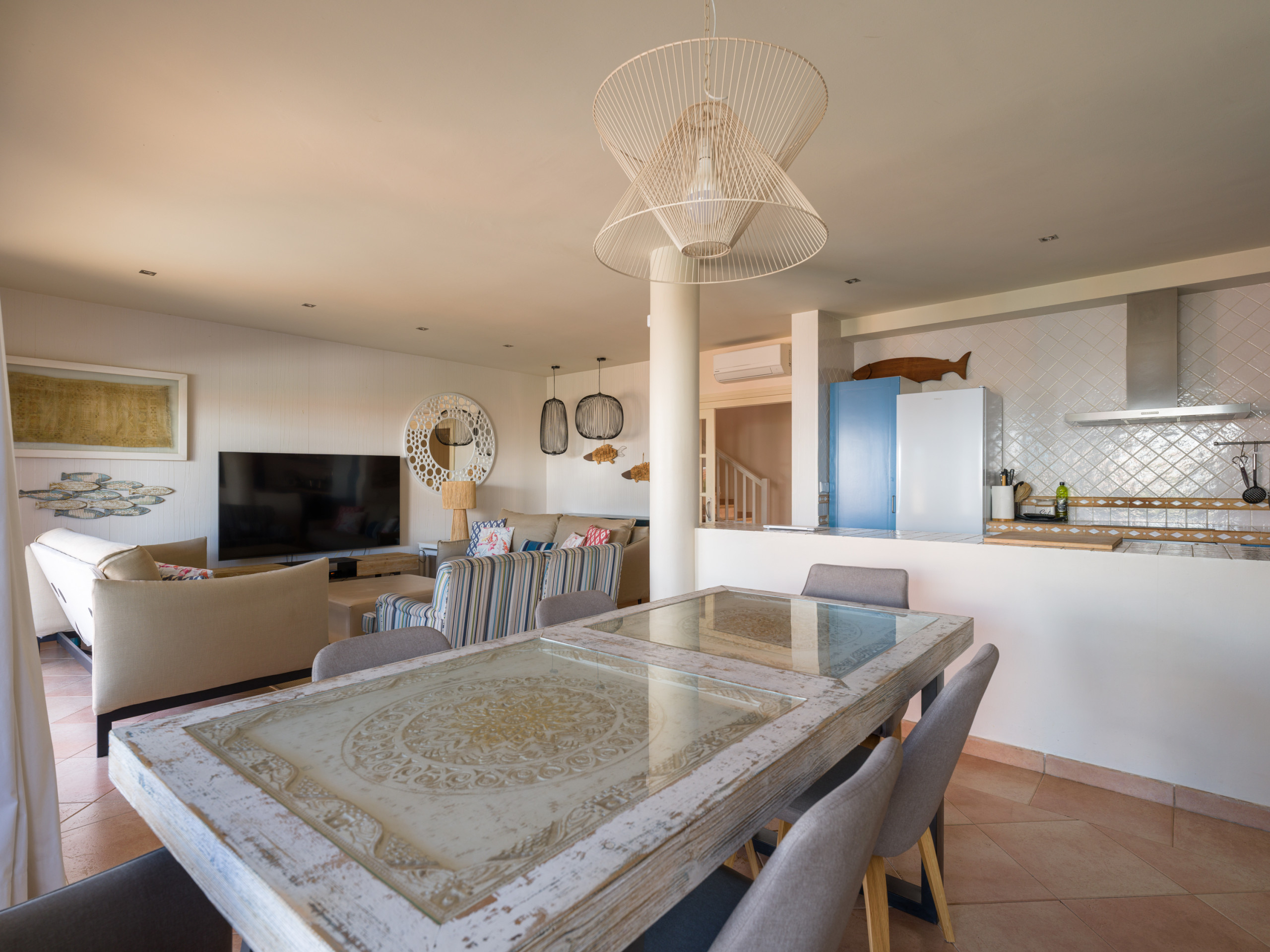 The Villa has 3 bedrooms and 2 bathrooms, with capacity for up to 6 people. It features an open-plan kitchen fully equipped with state-of-the-art appliances, such as an oven, microwave, dishwasher and fridge. The dining and living area is spacious and bright, with a comfortable seating area.