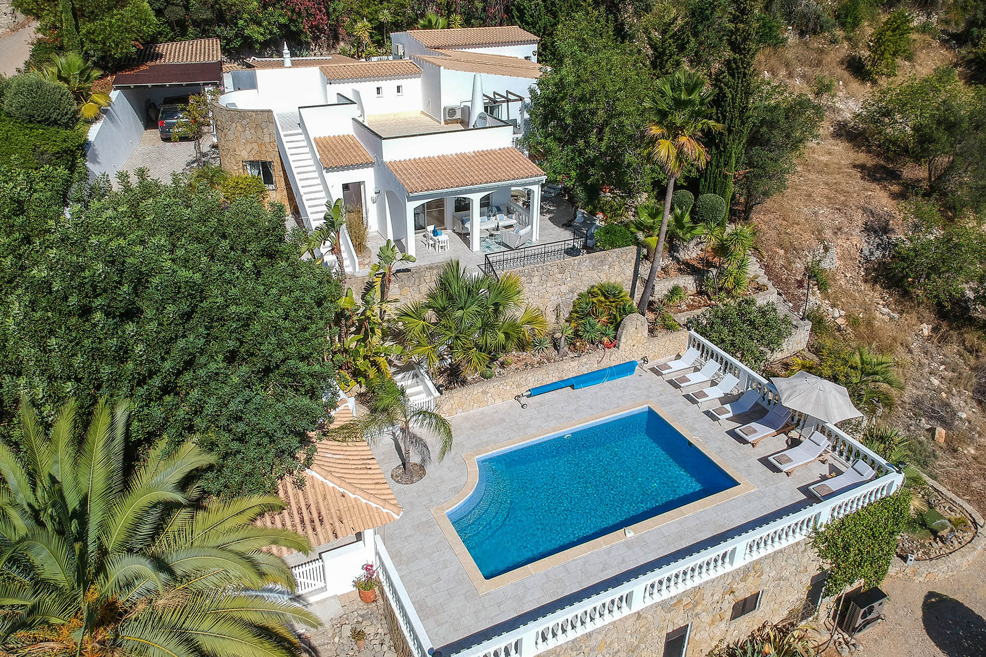 The outdoor is perhaps the best-selling point of this villa, with its magnificent views over the Algarve coast. In order to appreciate the peace and quietness of the countryside and the views, the villa has multiple outdoor areas for relaxing and also for al-fresco dining.