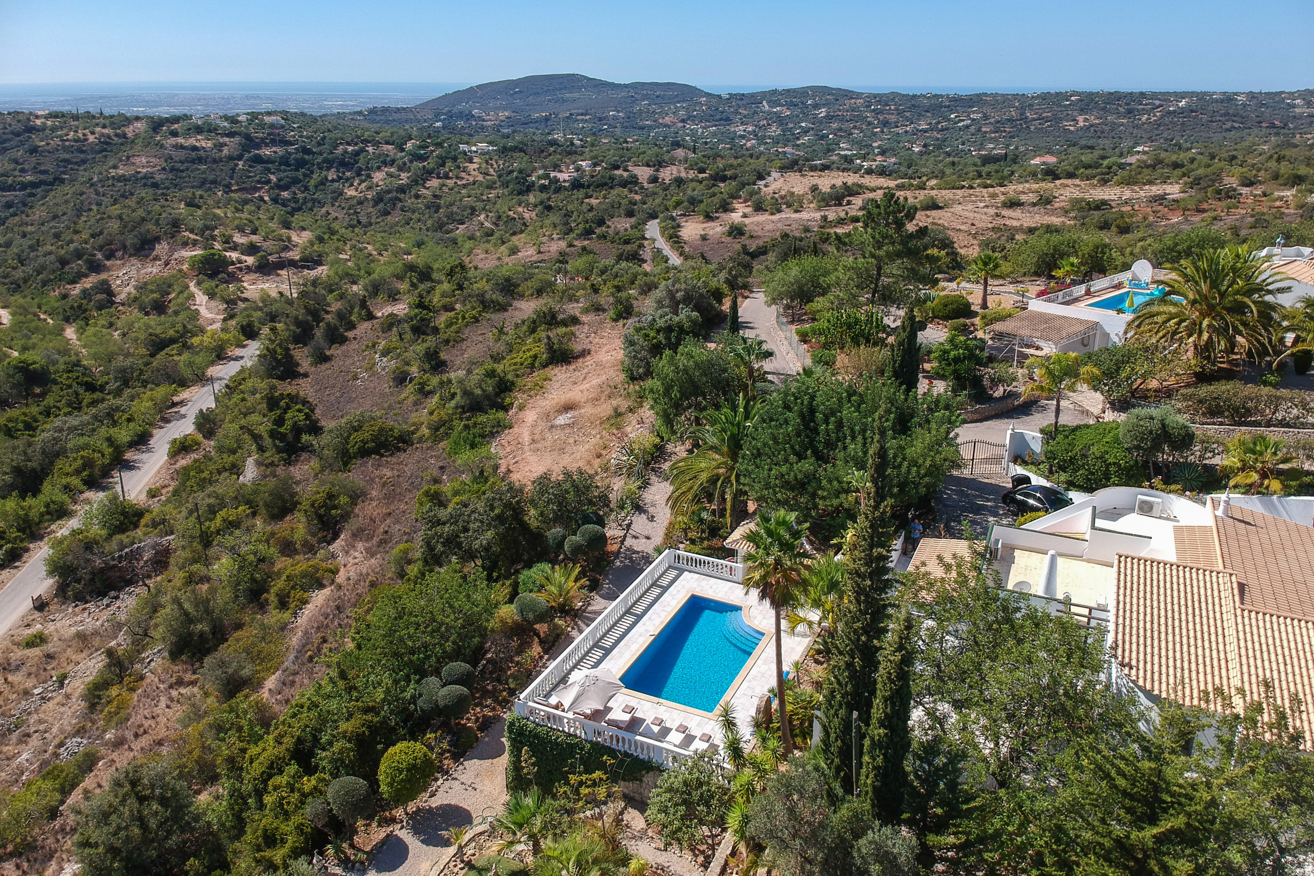 Idilic, quiet location. Spacious and well designed villa spread out on different levels. Short drive to local town with restaurants and supermarkets.