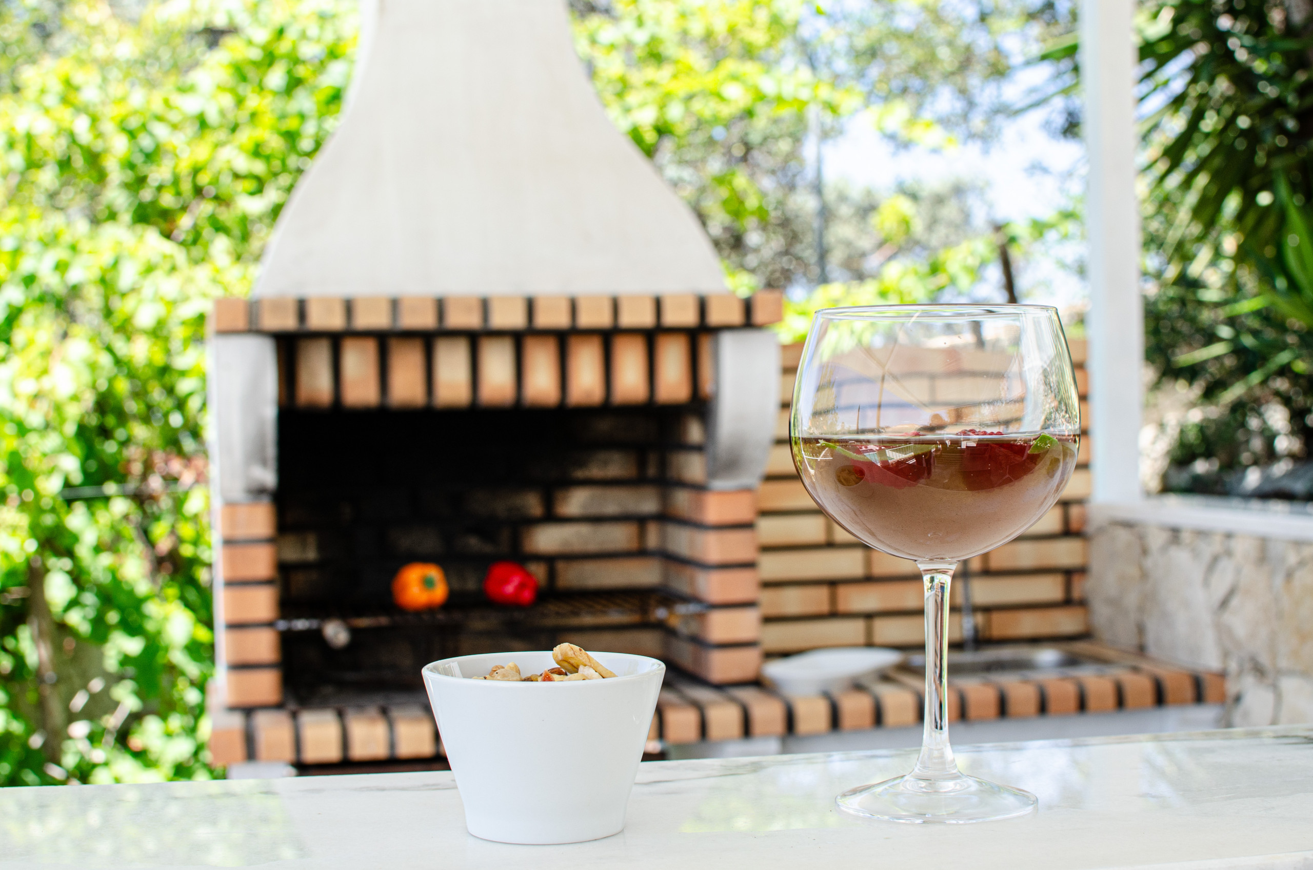 The outdoor dining area, complete with a good charcoal BBQ near the lounge area perfect for admiring the landscape and the beautiful sunsets.