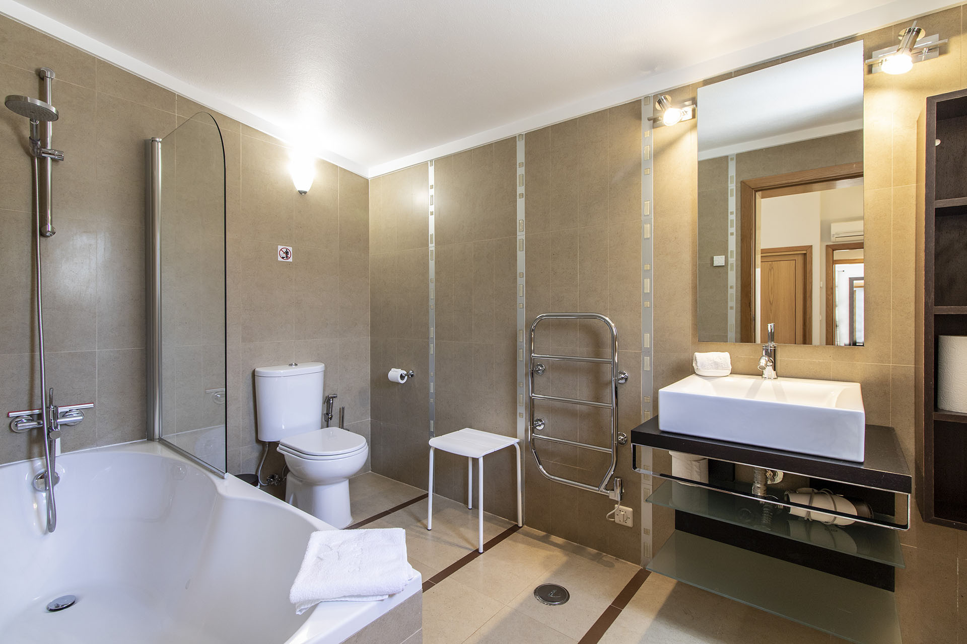 Ground Floor – Bedroom with a double bed and a private bathroom with bathtub;