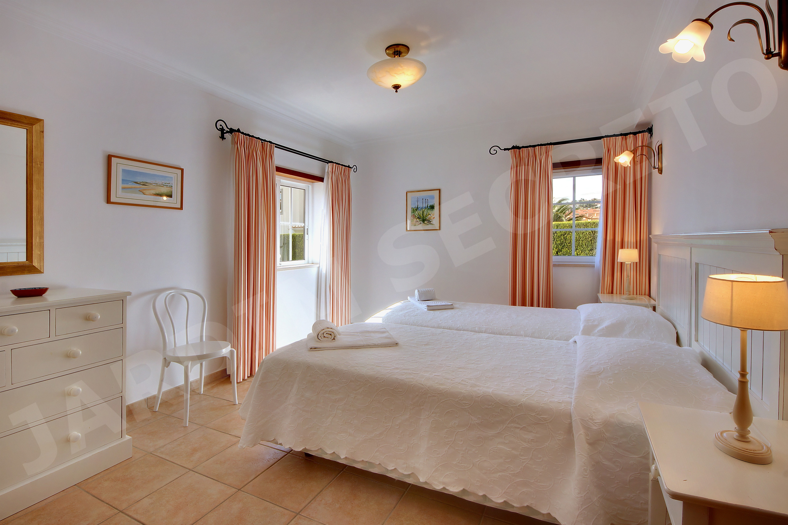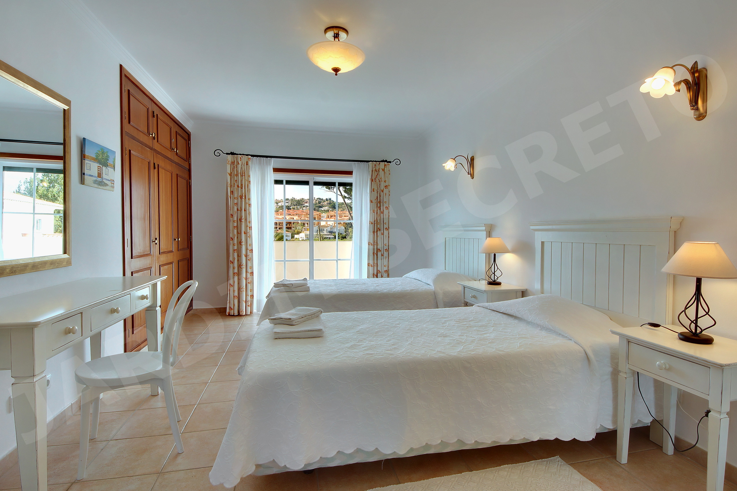 A twin bedroom, also with an en-suite bathroom and balcony, providing lovely views of the peaceful surroundings.