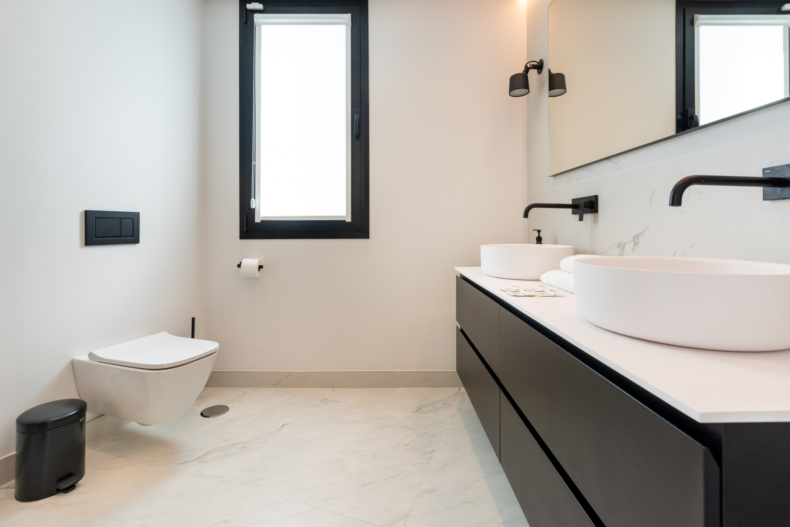 Shared bathroom 2: A large bathroom with a vanity, toilet, and a walk-in shower.