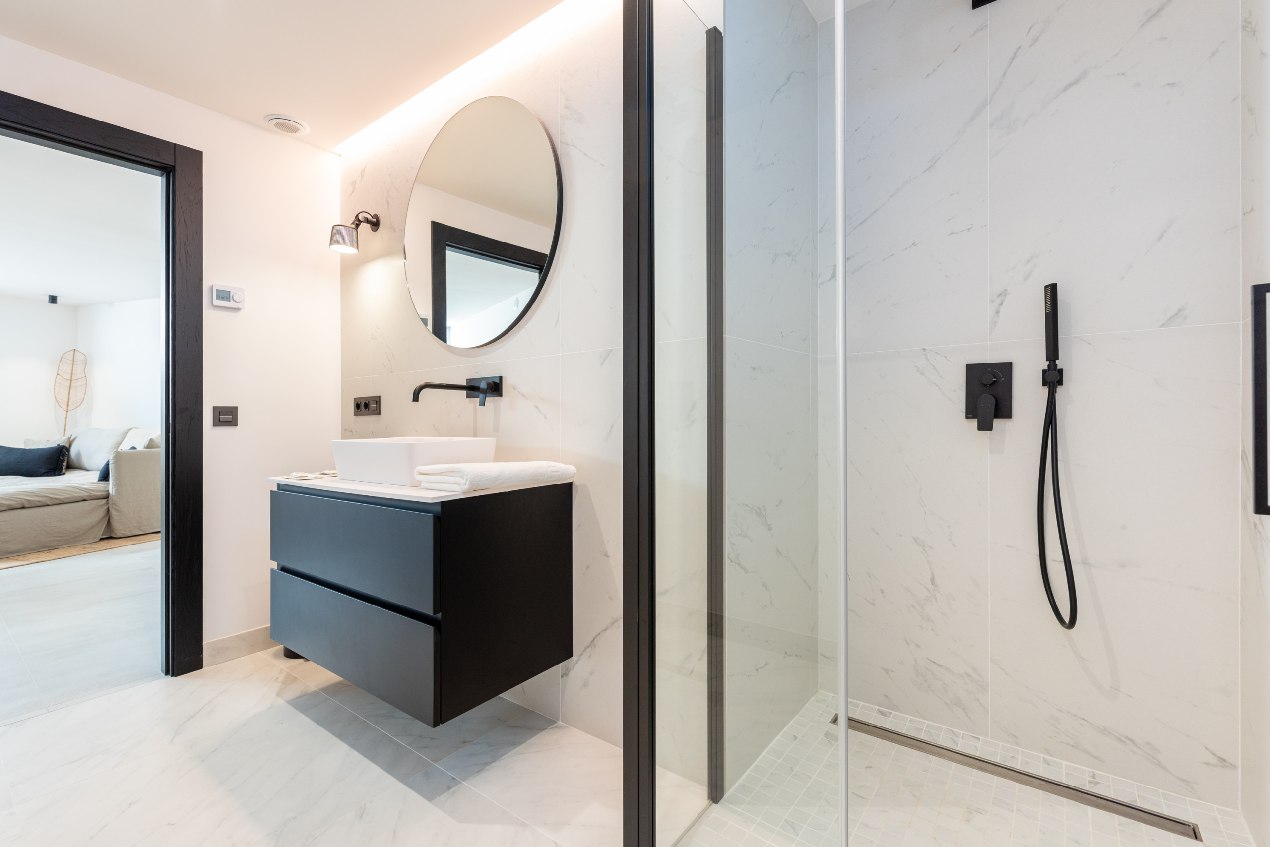 Master bedroom: A king-size bed, walk-in wardrobe, air conditioning, en-suite bathroom with shower. Exclusive access to the top terrace.