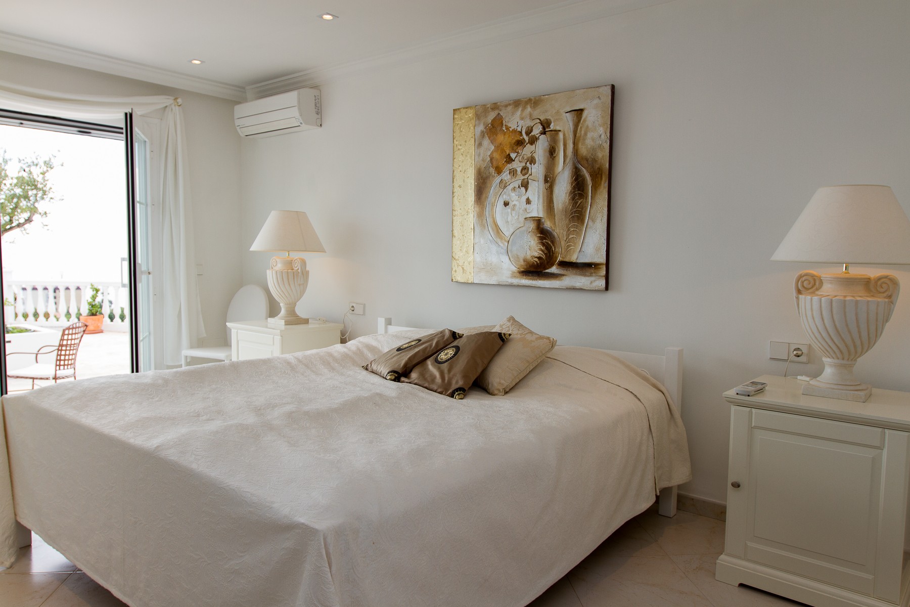 Master bedroom located in the main house includes: double bed, wardrobe, air conditioning, TV, bathroom en-suite, direct access to the terrace.