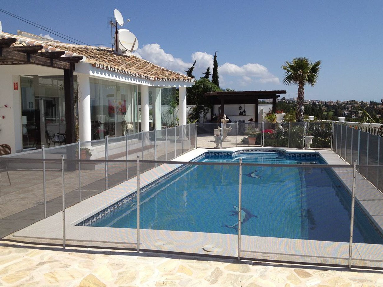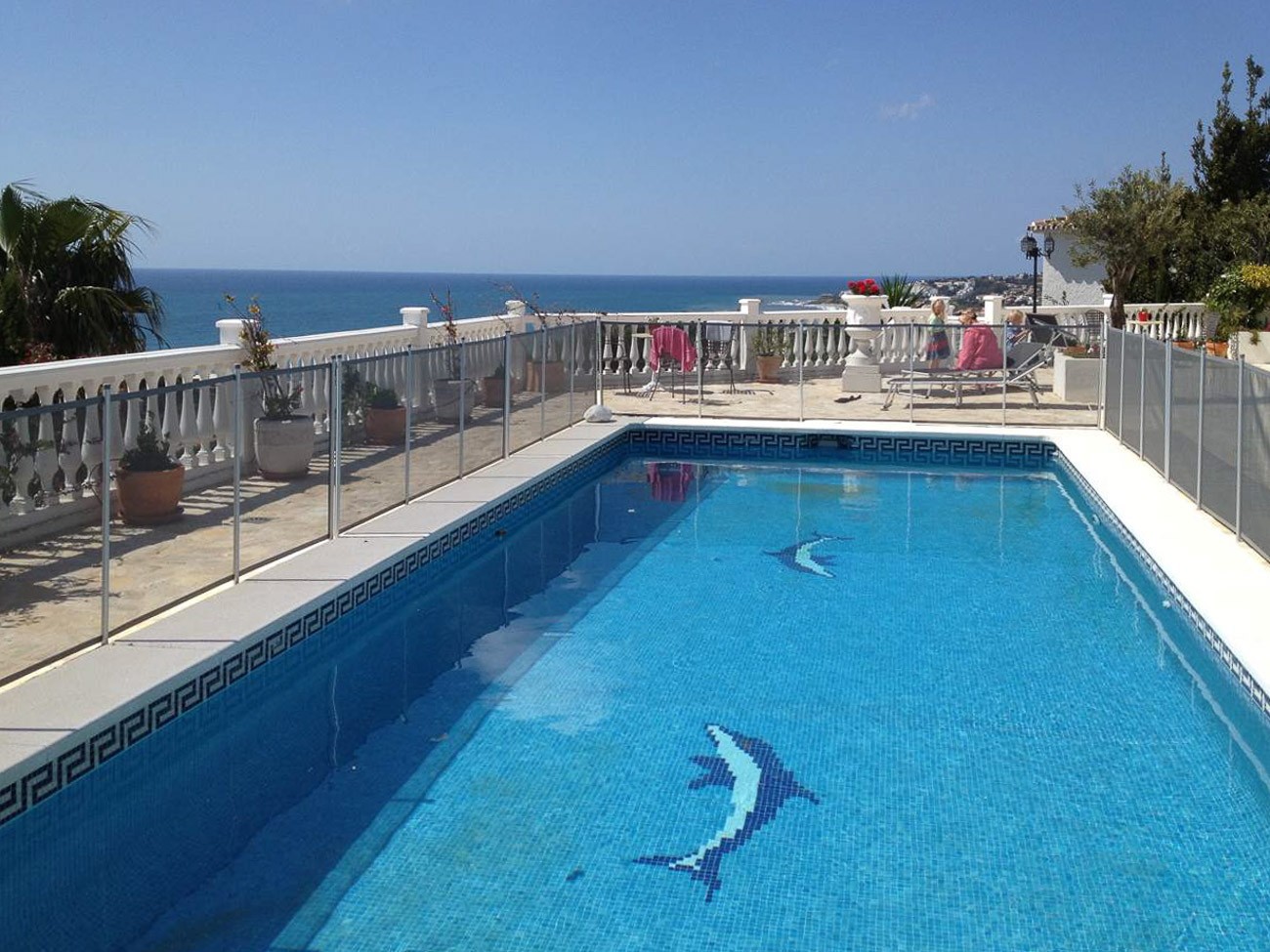 The pool is large 40m2, measuring 8x5 meters with Roman steps. Note that if you have small children, you can order installation of safety nets (www.babysegur.com) around the pool, so children can play safely persuaded on the terraces. Notice that you can stay completely undisturbed on all terraces.