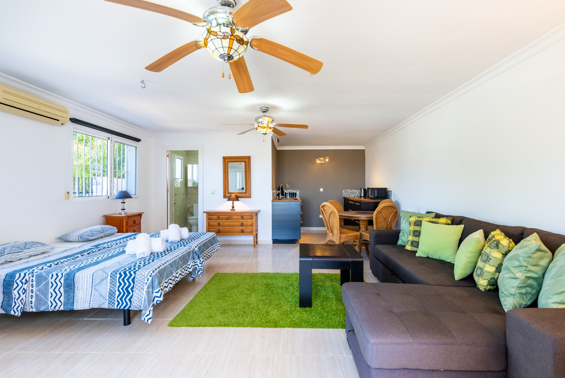 The villa, as well as the two apartments, have air conditioning in all rooms and there are parking spaces for several vehicles on the premises.