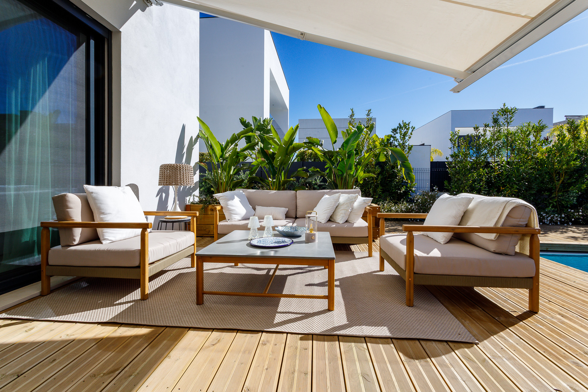 The villa features five spacious en-suite bedrooms, giving every guest their own private space. Bright interiors, clean architectural lines and high-quality finishes create a calm and elegant atmosphere throughout. Large indoor and outdoor living areas make it easy to enjoy time together, whether relaxing by the pool, dining on the terrace or unwinding after a day out in Tavira.