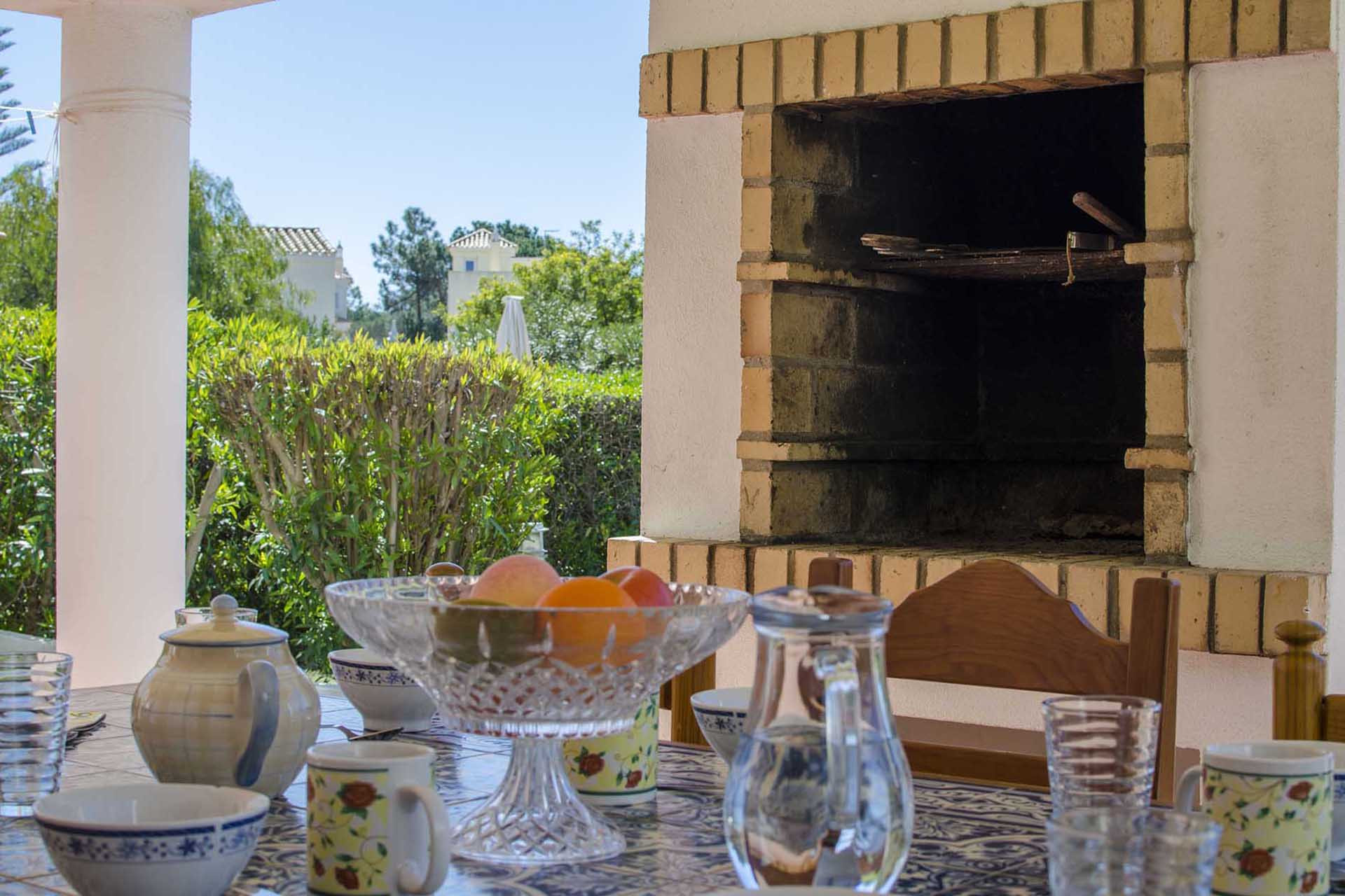 The architecture of the house provides for a refreshing shade just under the BBQ and the outdoor dining table, perfectly positioned and safeguarded from the elements. The charcoal BBQ is positioned just next to the table which makes it very practical to use.