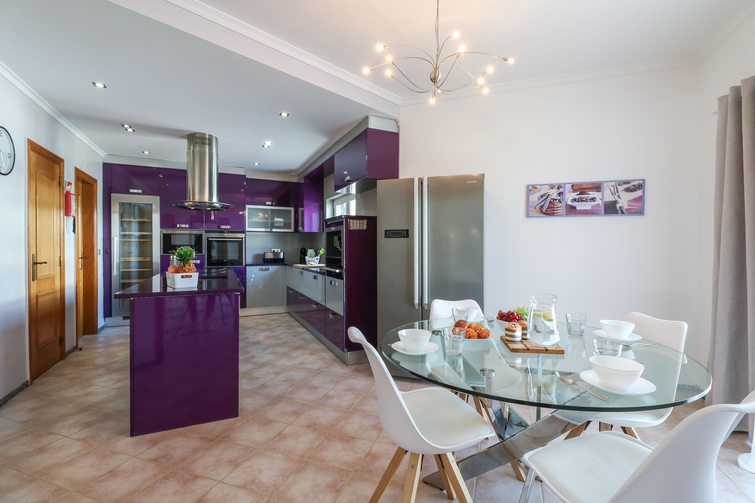 Отдельная кухня, оснащена газовой плитой, оборудовано холодильник, микроволновая печь, духовка, морозильная камера, посудомоечная машина, столовые приборы, кухонная утварь, кофеварка, тостер и Чайник.