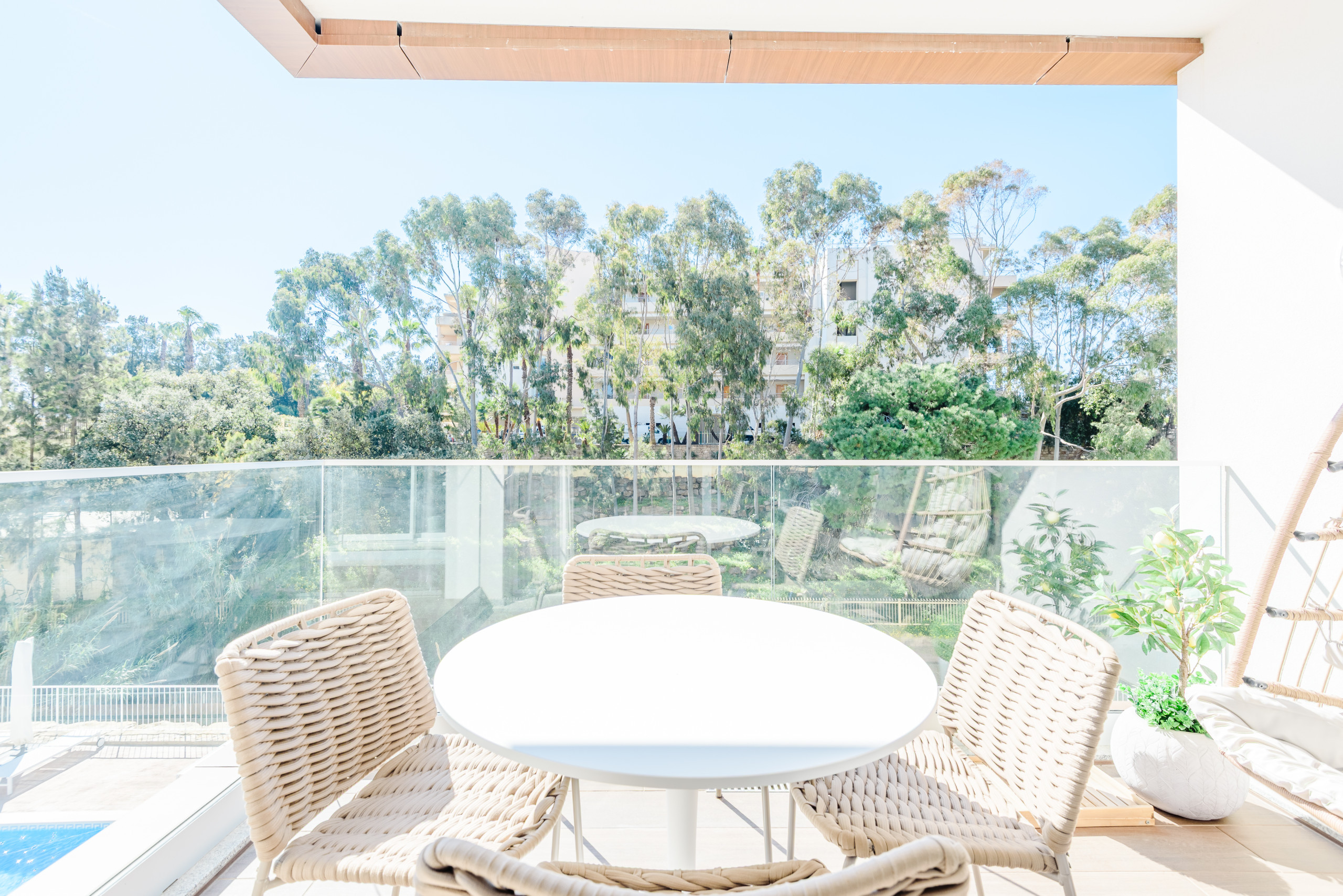 Разработан для размещения до четырех гостей, объект недвижимости отличается светлым, открытым пространством с высококачественной отделкой по всей площади. Большие окна пропускают естественный свет, а южная сторона усиливает ощущение пространства и тепла. Гостиная соединяется с частным балконом, идеально подходящим для спокойных утренних часов или отдыха после дня на пляже.