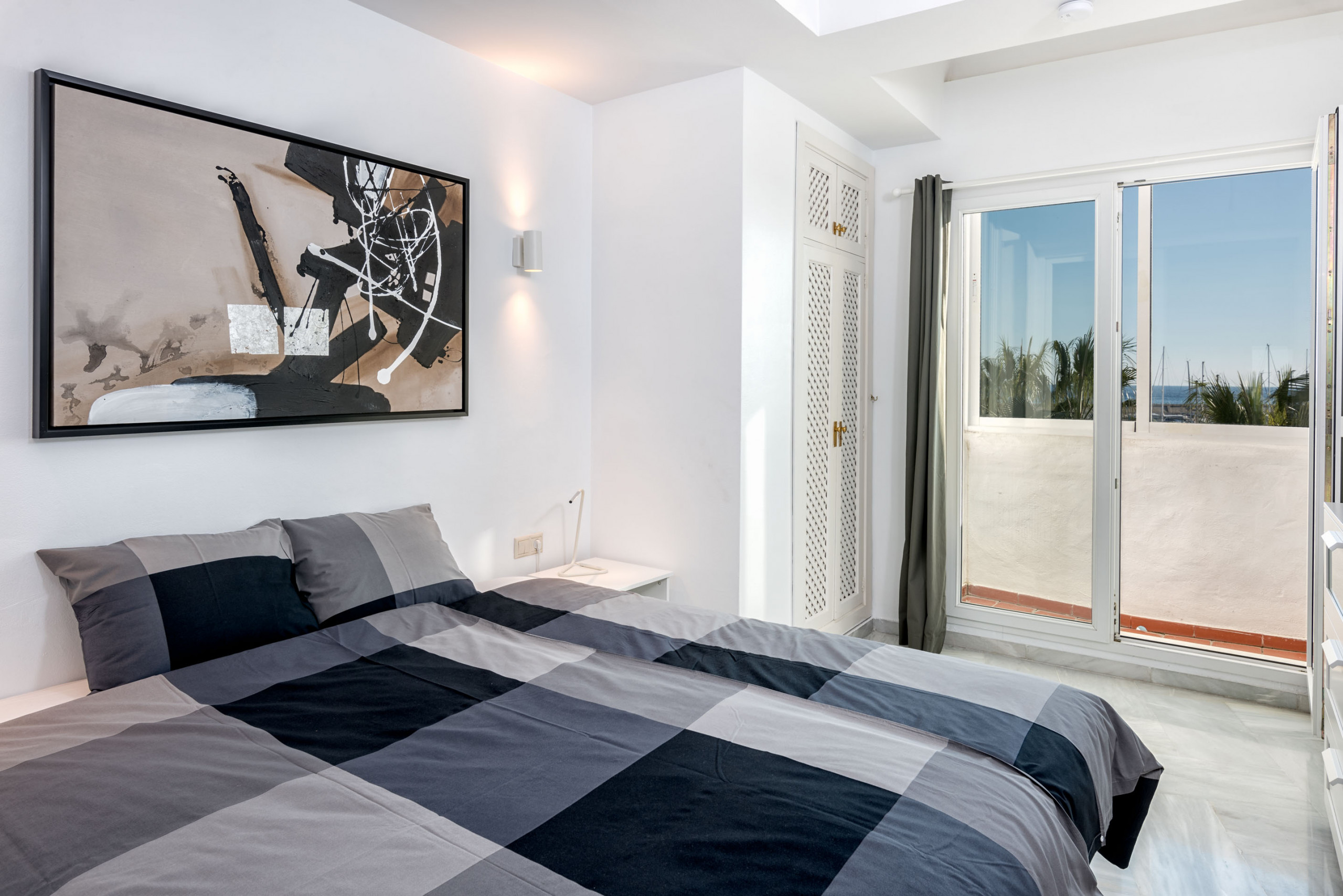 Bedroom 1: King Size double bed (180x200cm), air-condition, wardrobe, bathroom with shower en-suite and hairdryer, views to the Marina.