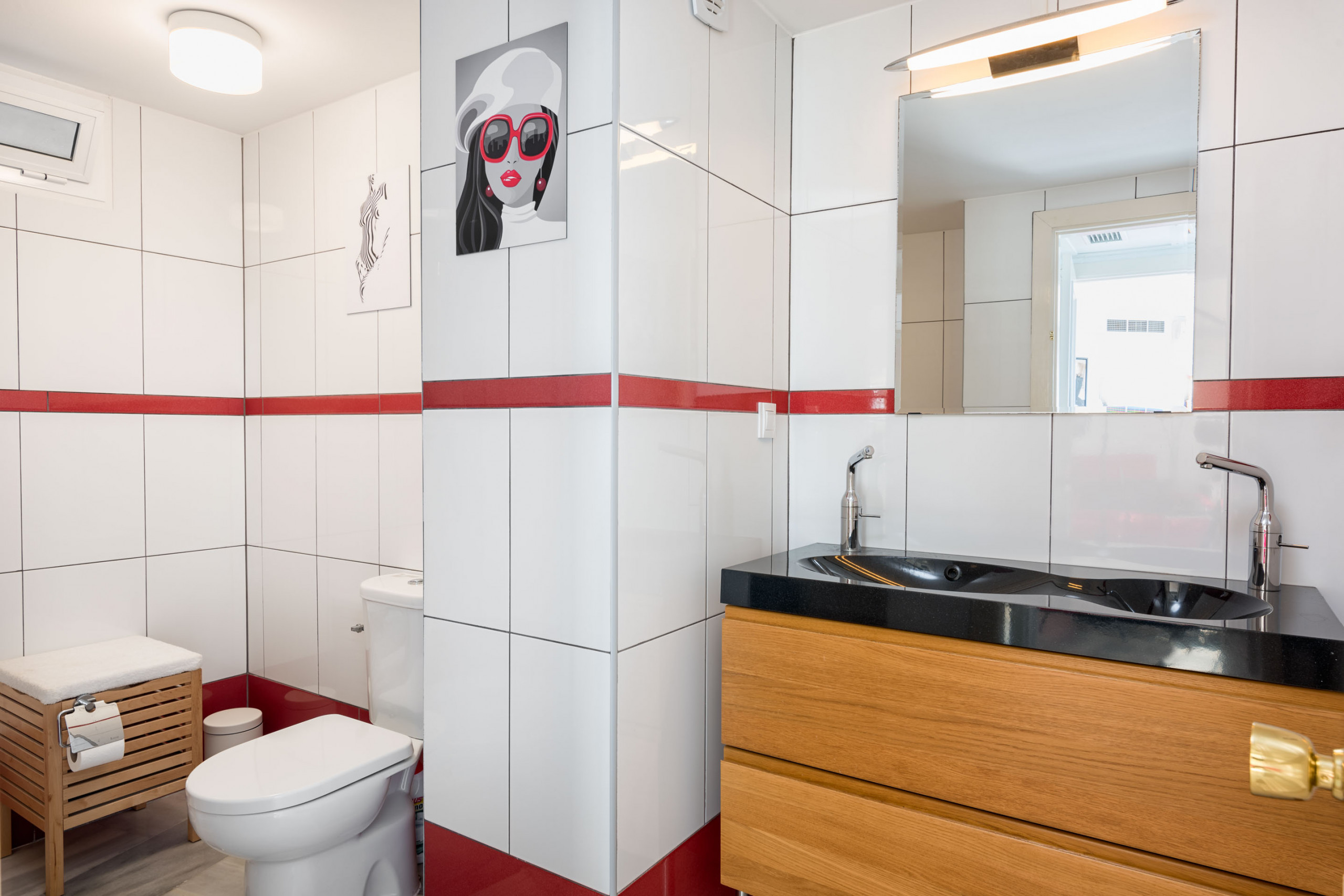 The rental apartment is very spacious with its 110m2 and can accommodate up to 6 persons. Kitchen is fully equipped and there is plenty of room in the airconditioned living room which contains large sofa, Smart TV, High-speed internet, and a lovely dining area with seating for 6 persons.