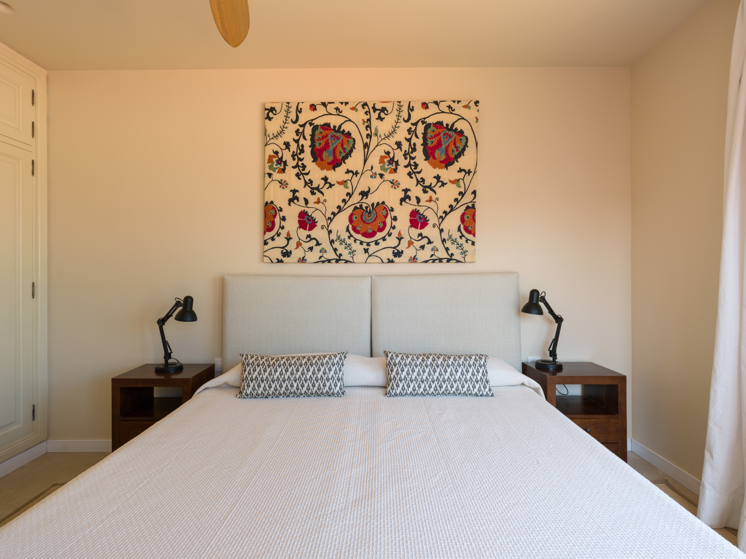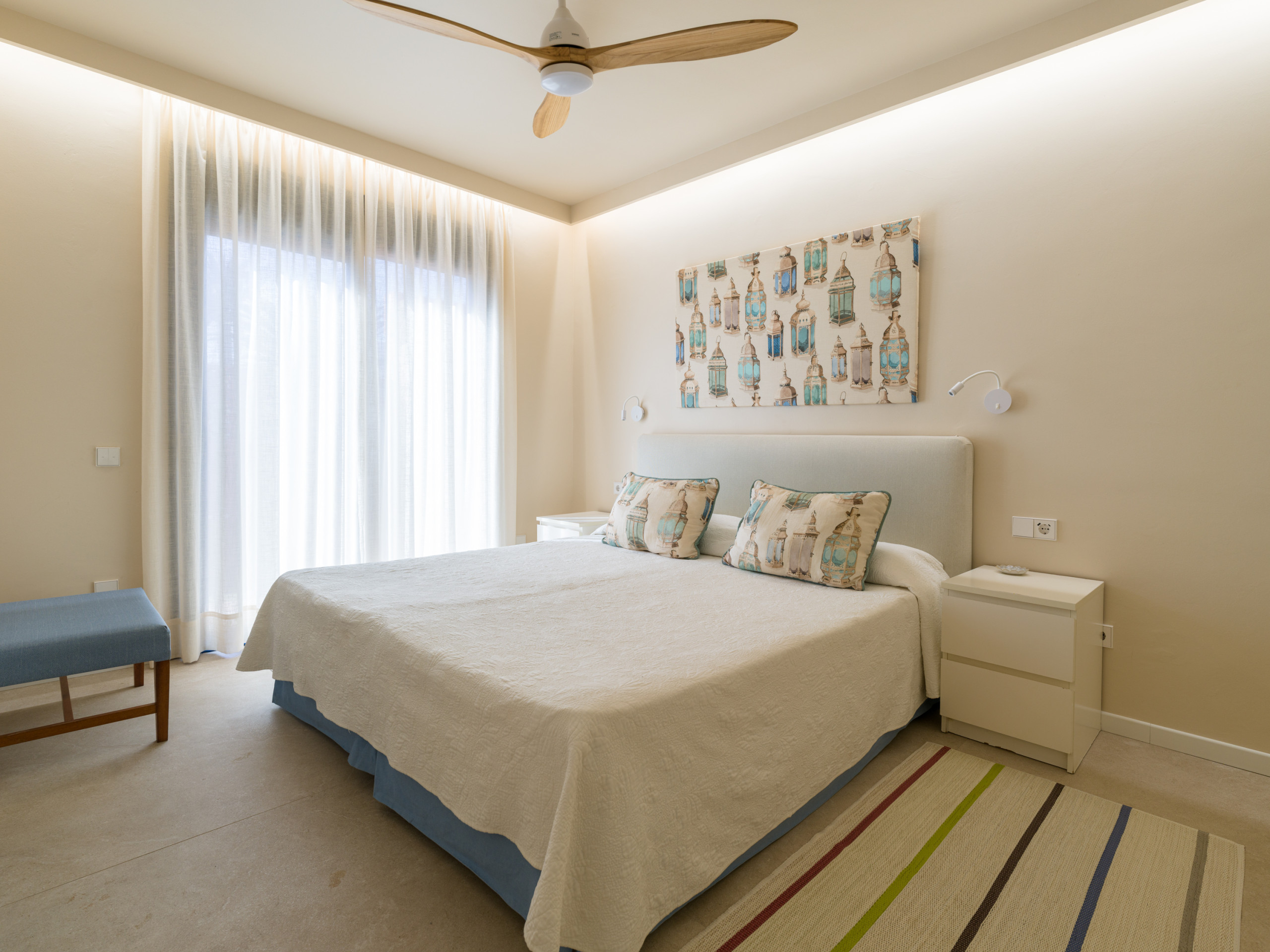 Размещение имеет зеленая зона, сад, oгороженный участок, 23 кв.м террасы, стиральная машина, Барбекю, утюг, Доступ в интернет (wi-fi), Фен, система отопления, систему кондиционирования в гостиной и некоторых спальнях, бассейн собственный бассейн, Открытая парковка в этом же здании, 2 вентиляторы, 1 телевизор, спутниковая антенна (языки: испанский, англиийский, немецкий), радио.