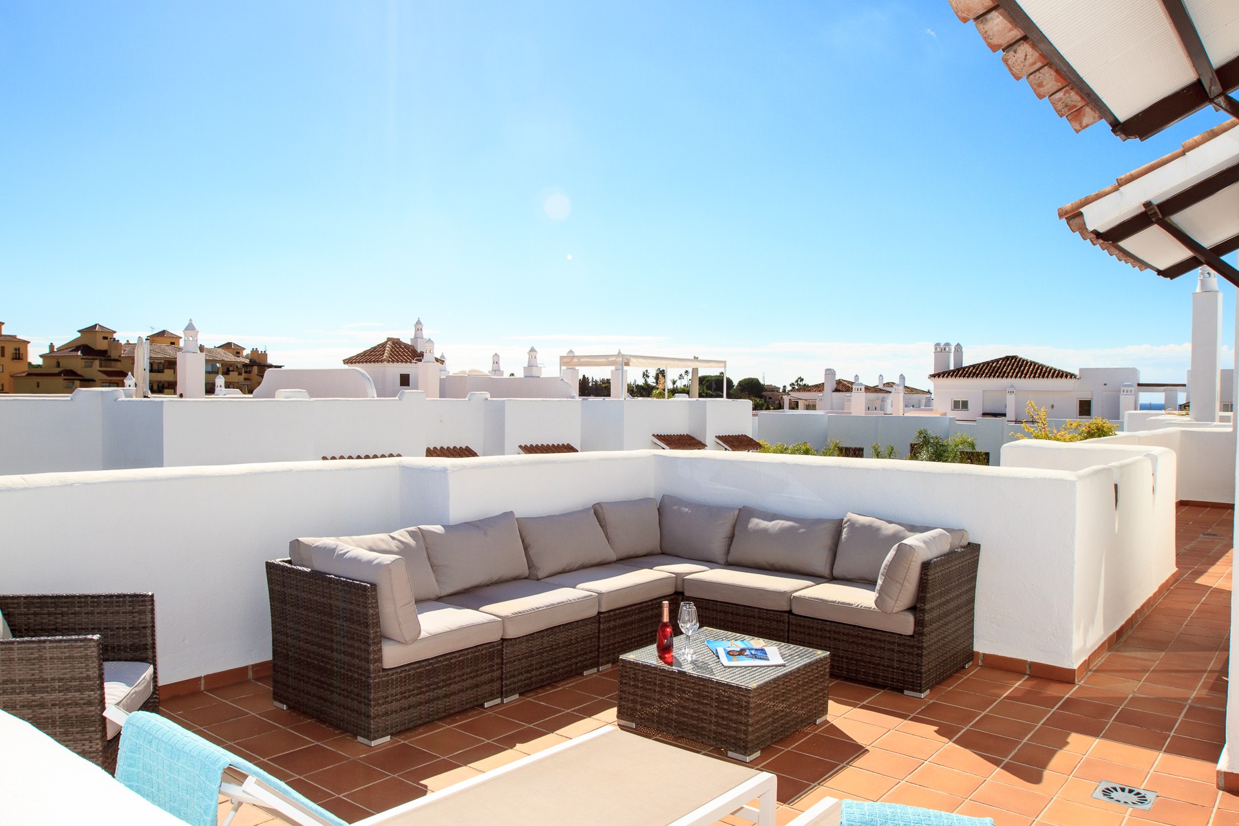 Exclusive holiday apartment with XL terrace in Golf Hills Estepona, near Marbella and Puerto Banus.