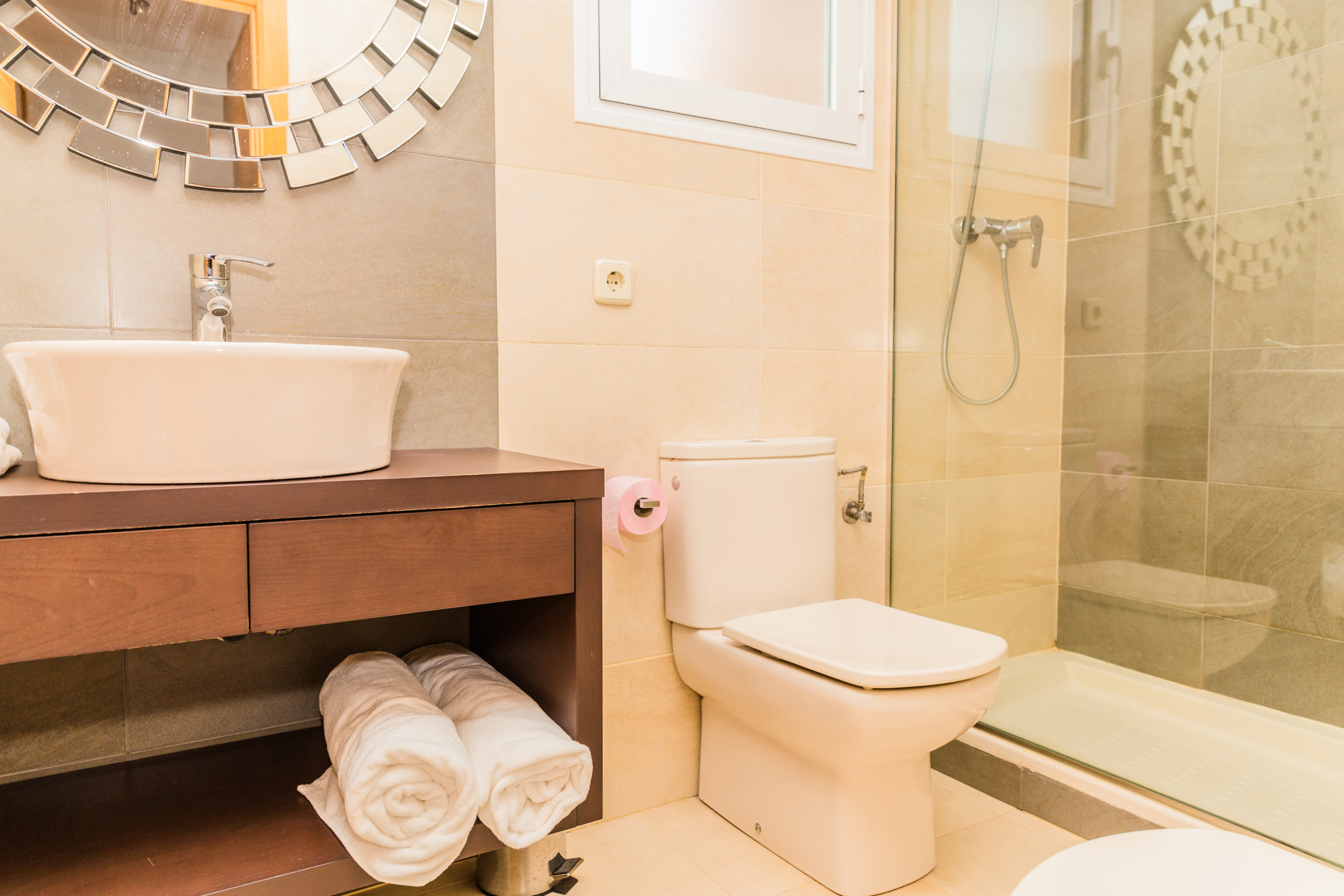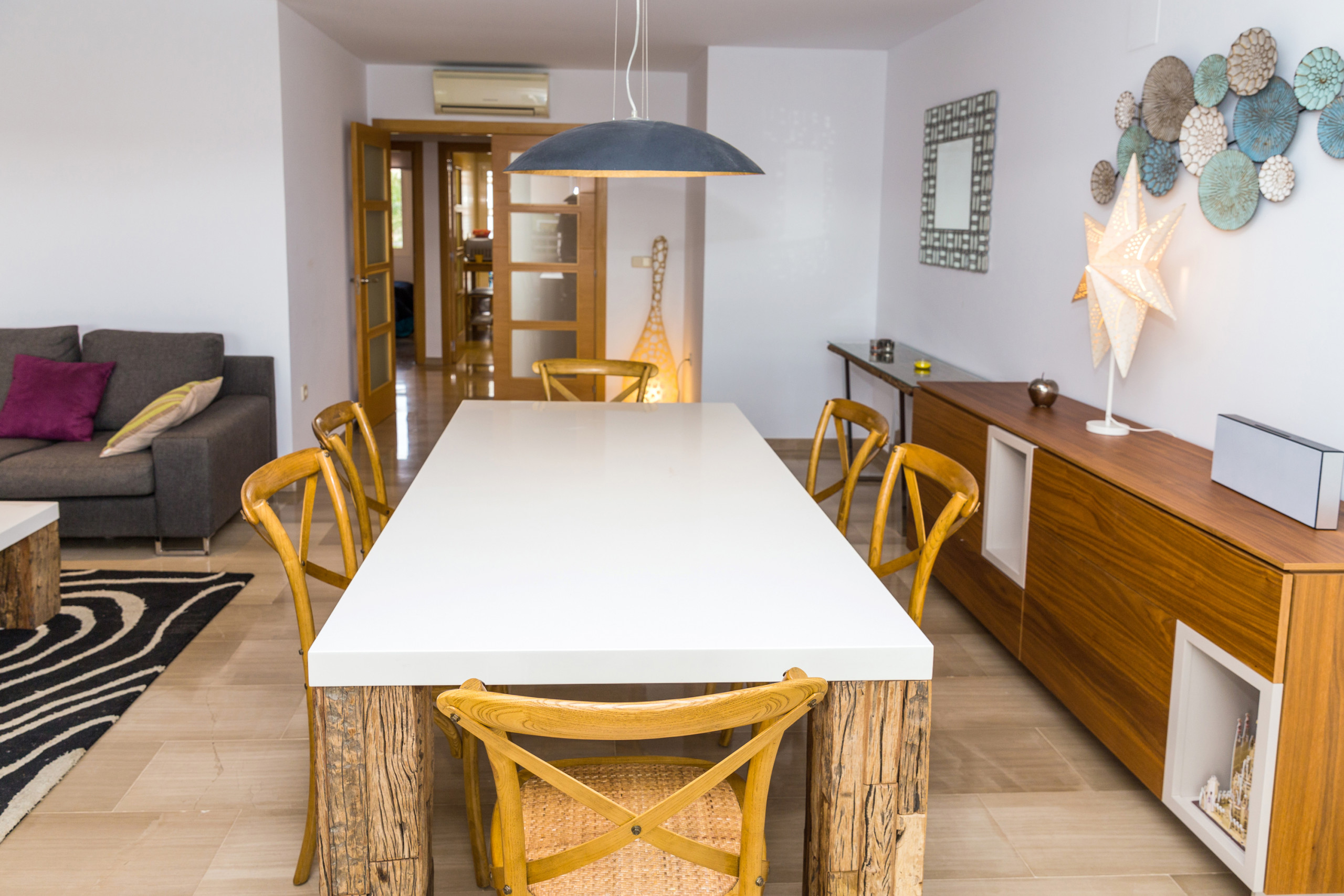 Decoración genial,muy limpio,muy amplio,muy completo en cuanto a todo (utensilios de cocina,mobiliario terrazas,hamacas para la playa/piscina),plaza de parking propia).Nuestro contacto Andrés (de Rock Rentals fue encantador dándonos ideas deopciones de visitas, restaurantes,ocio...y resolviendonos los problemillas iniciales con las persianas y el aire acondicionado.La piscina tb es espectacular,muy bonita,bien cuidada y abre hasta las 00h.Superrecomendable!!!!